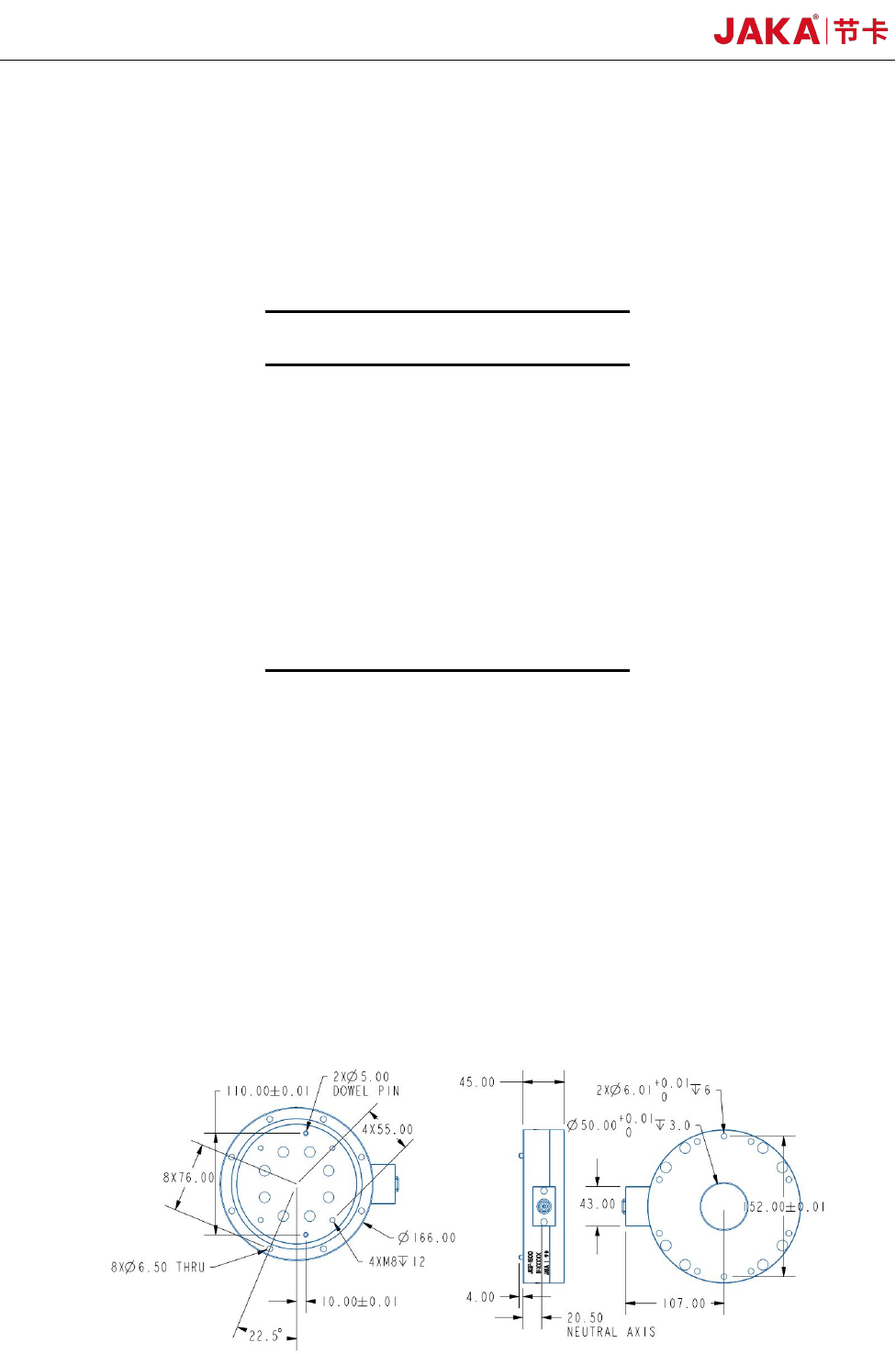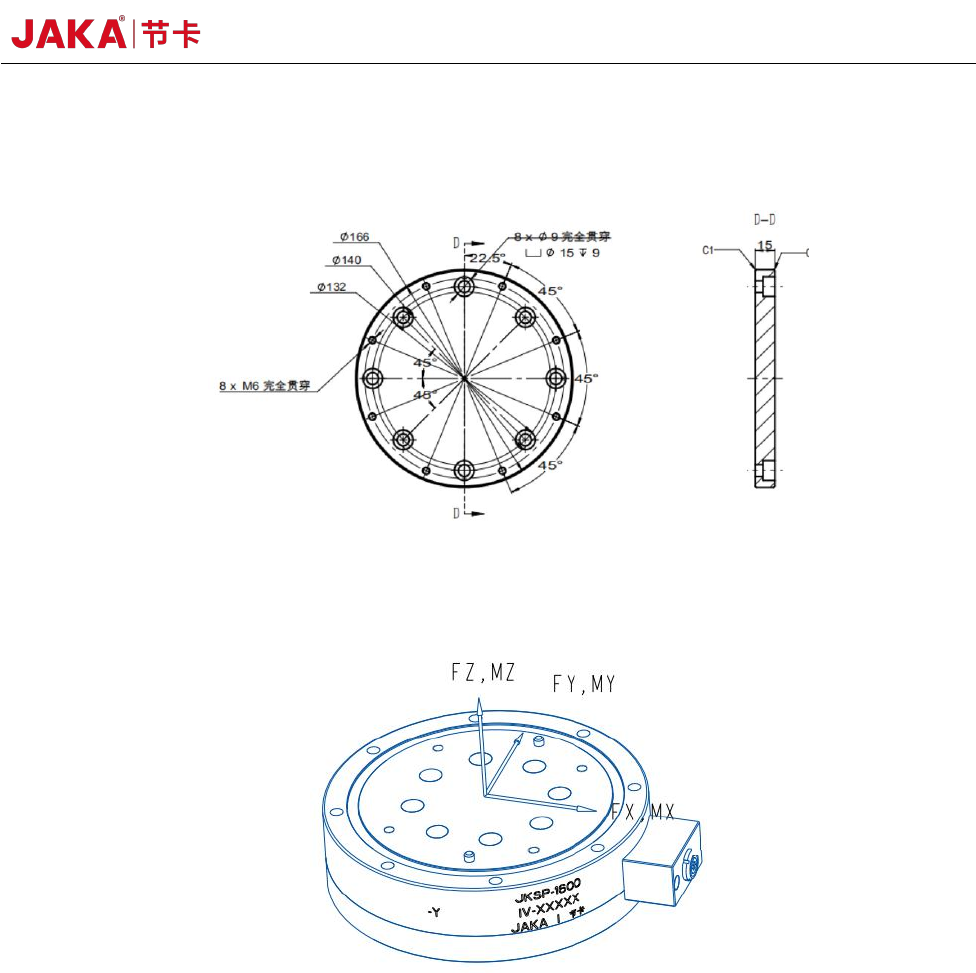 JAKA Zu Sp 13 图 8. 力传感器尺寸图 图 9. 转接法兰尺寸图 图 10. 转接法兰尺寸图 6.2 JAKA Zu7 s p