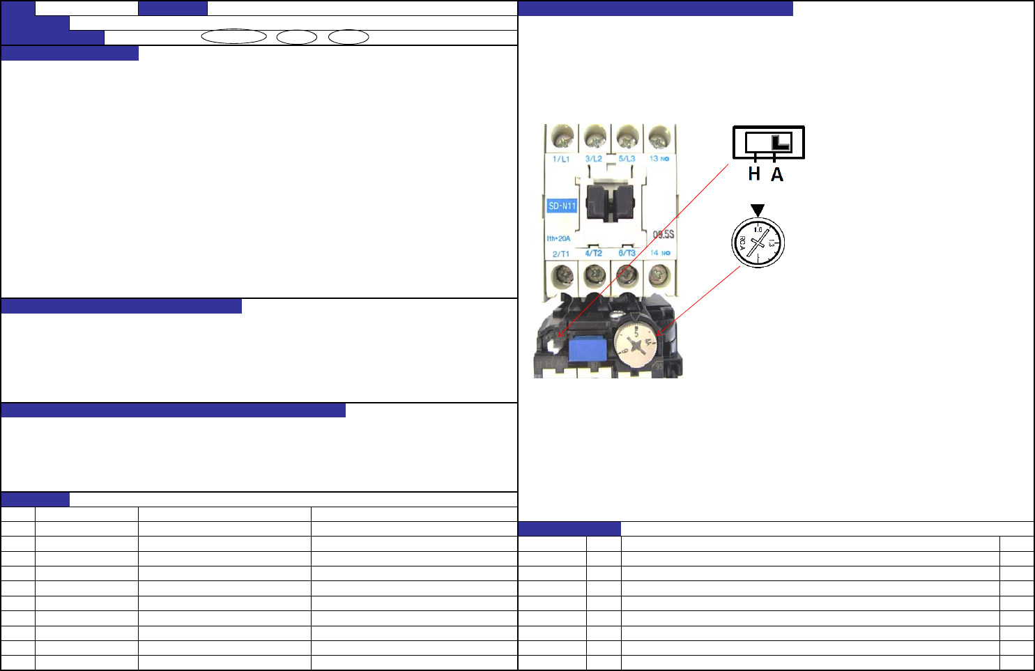 更换MR1时,请把热动继电器所附带的(加热器名称)调整旋钮对准下述的设置。