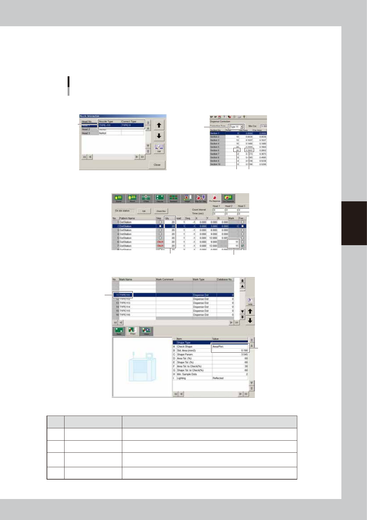 4-34 4 Making the dispensing stable 4. Position correction dispense function 4.1 Over view and item restrictions T his function measures the deviation in dispensing position caused by the individual nozzle accurac y and …
