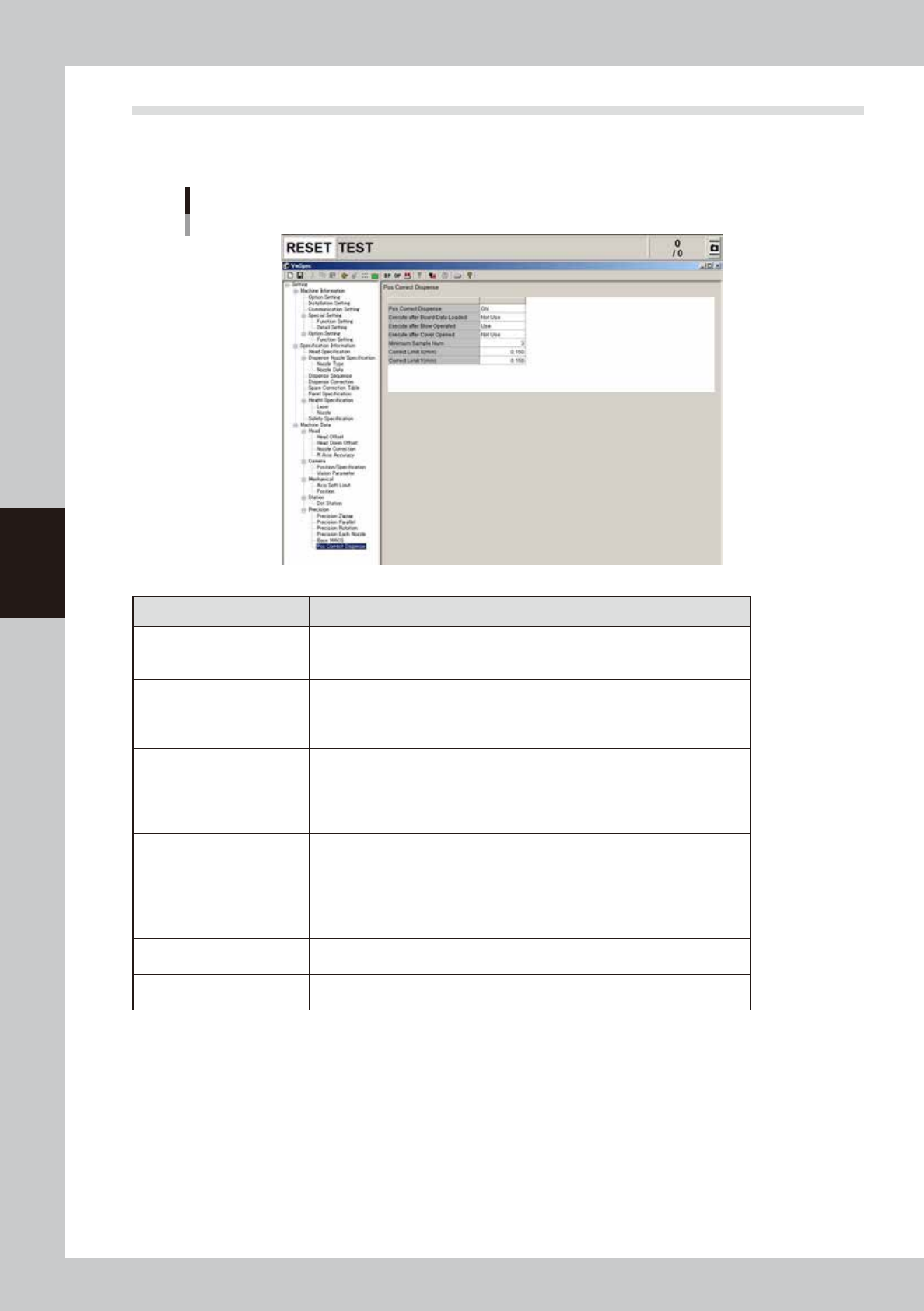 This section describes the machine data setting for position correction dispensing. ([Machine] - “Setting” -