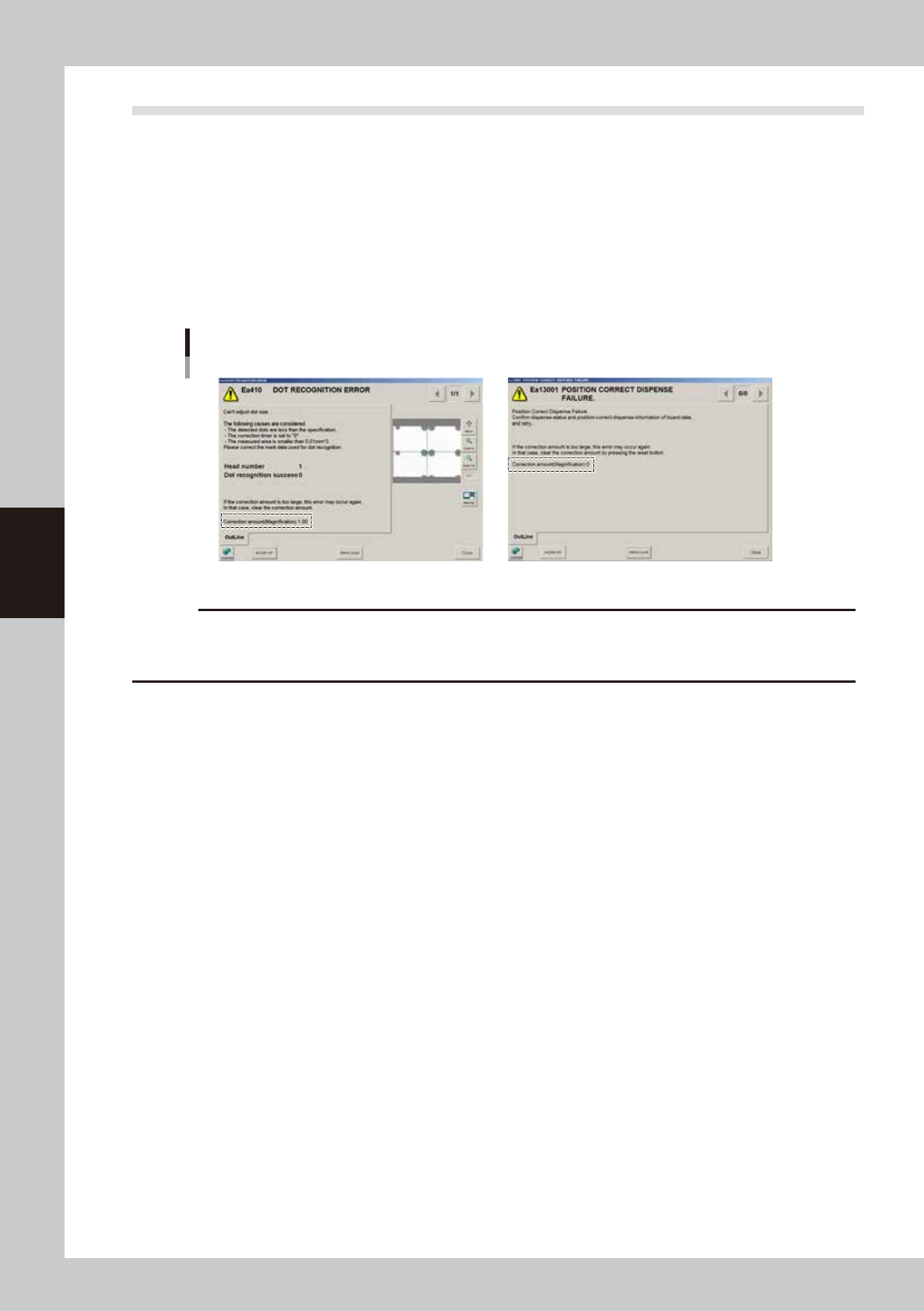occur in position correction dispensing and predispensing on the dot station. If the correction amount is still