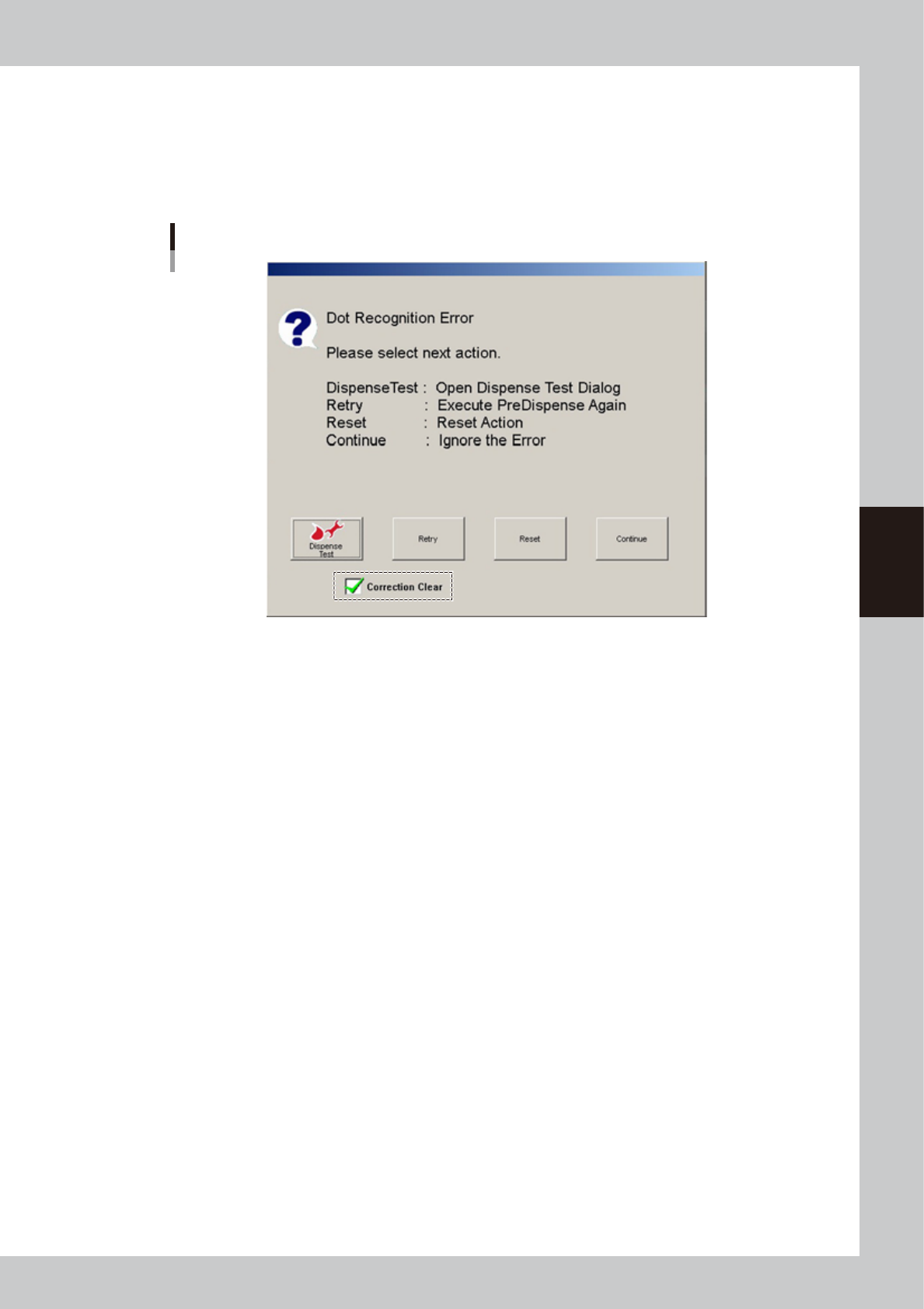To clear the correction amount when a recognition error occurs in position correction dispensing: