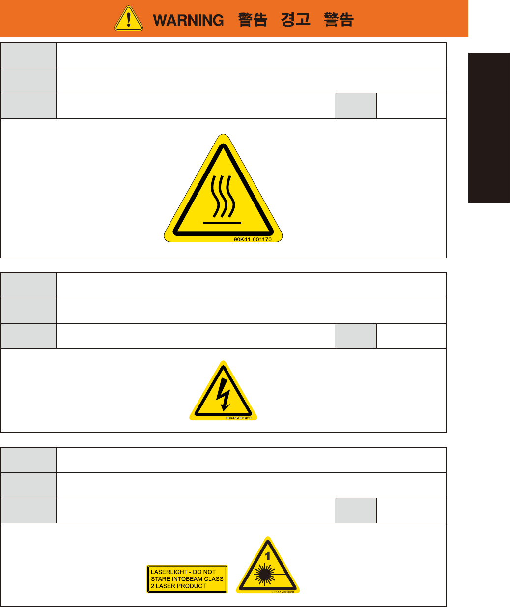xvi Safety instructions Potential hazard Electrical shock T o avoid hazard Keep the ionizer away from eyes. Do not disassemble or touch the discharge needles. Applicable machines Machines equipped with ionizer (option) C…