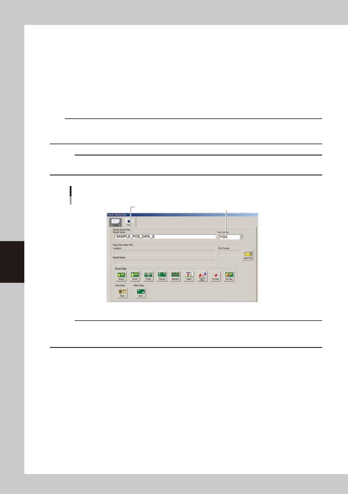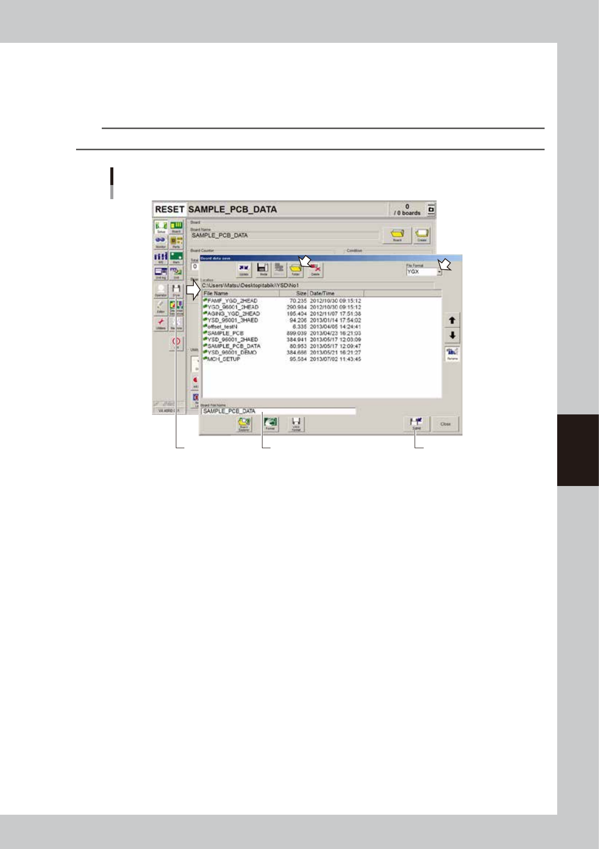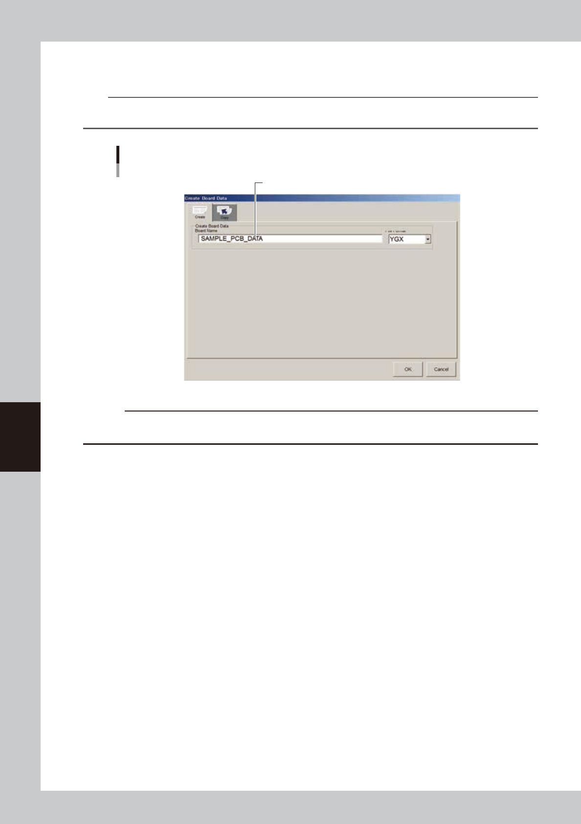 5-7 5 Creating the board data 4 Sav e the new board data. 1. Press the [Save] button in the main menu button area. The Save dialog box appears showing the board data list. 2. Check the drive, folder and file for mat to s…