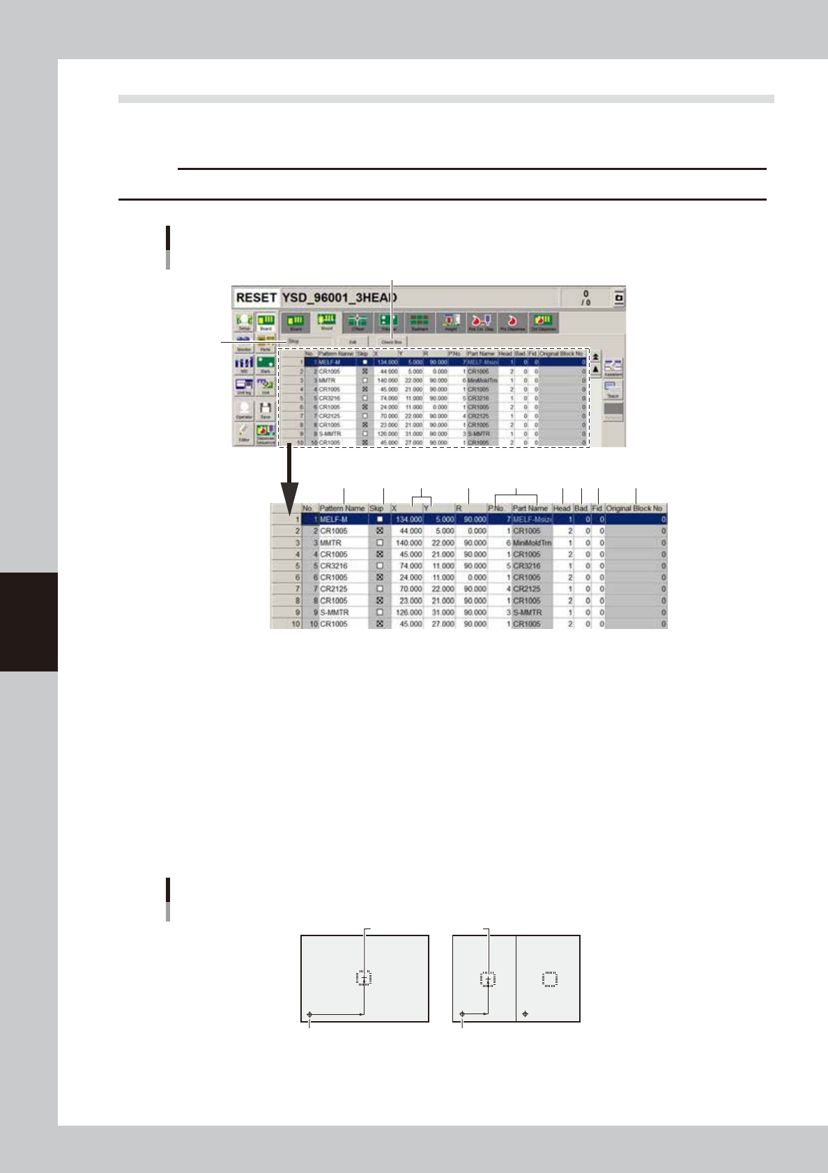 multi-block boards (multi-board panels), enter the position data relative to the reference block. You can also use the