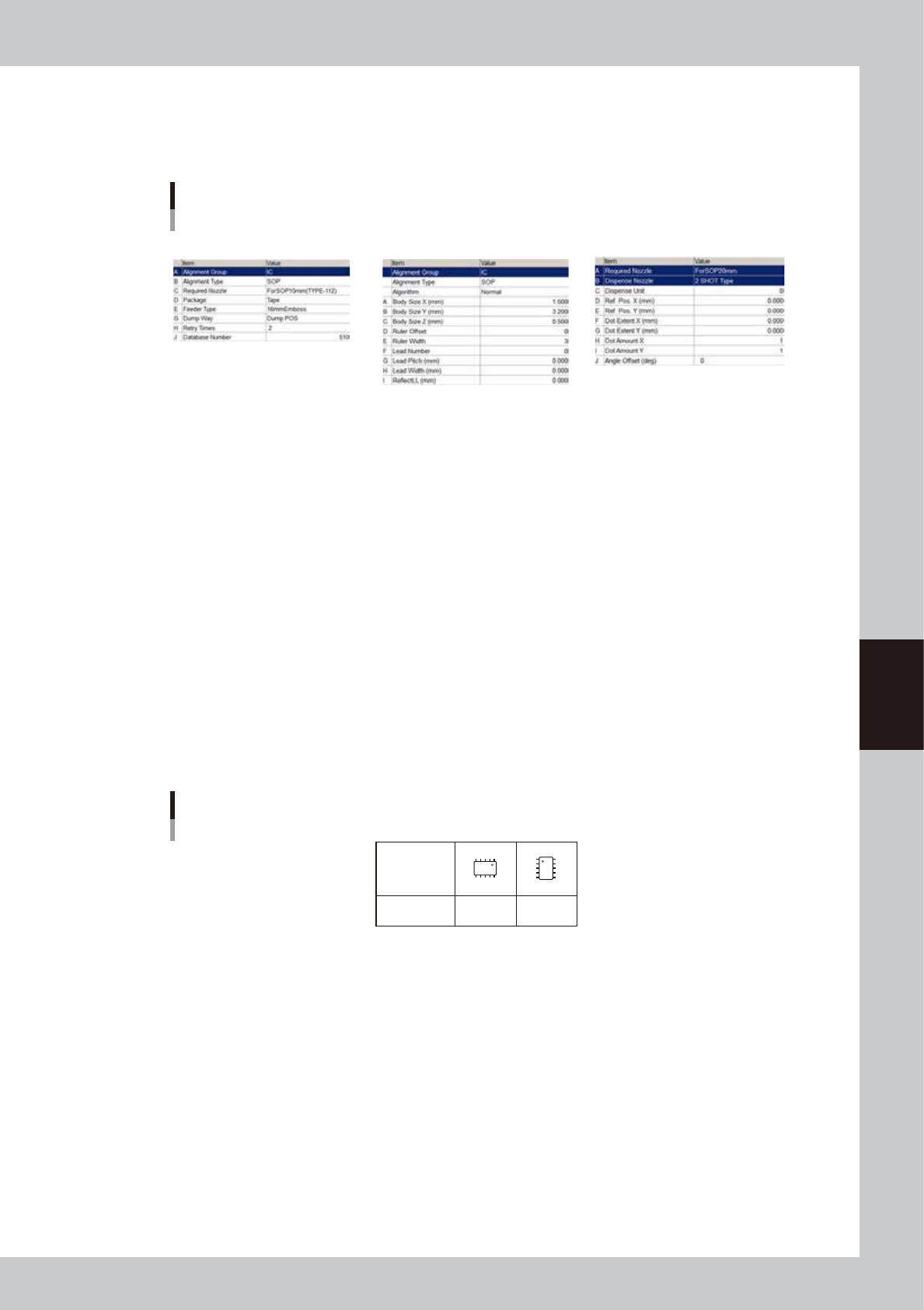 SOP components are registered with the parameters shown below. Refer to the description in "5.2 Chip components" for
