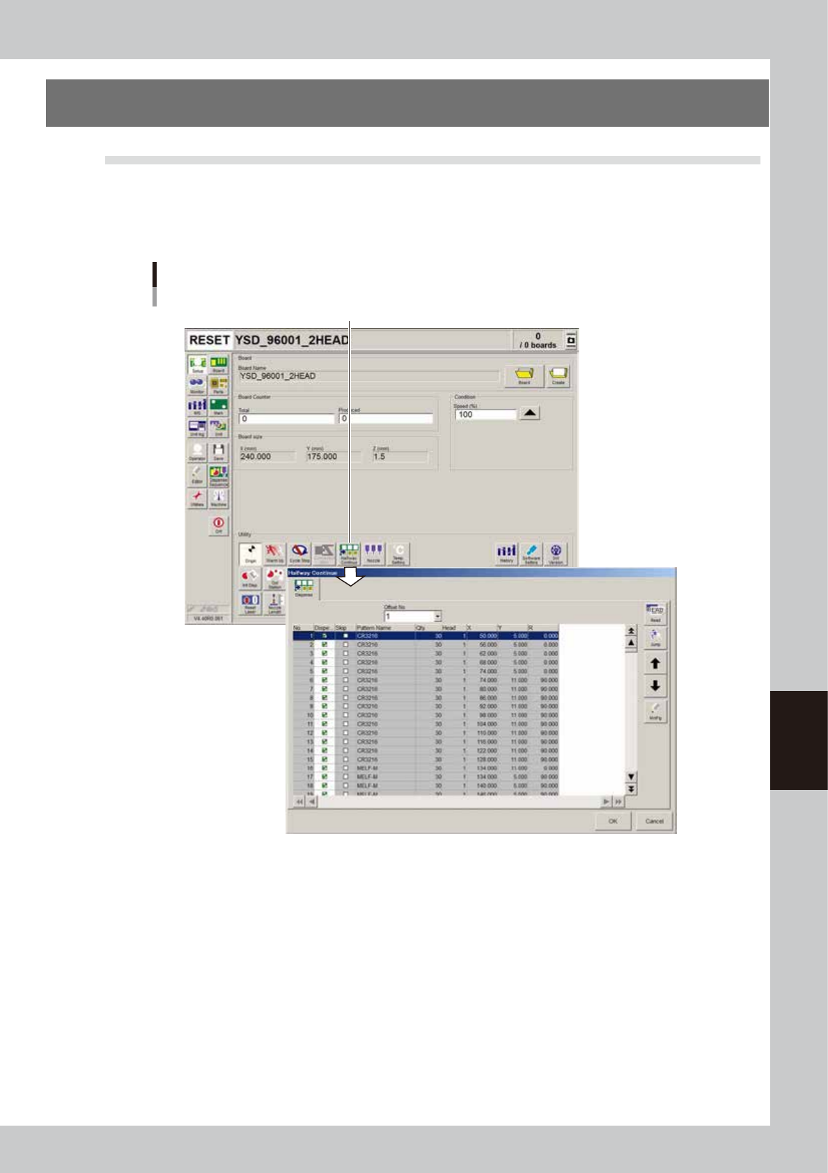 also be edited. Note that this function is used only for the first board, with routine mounting operation