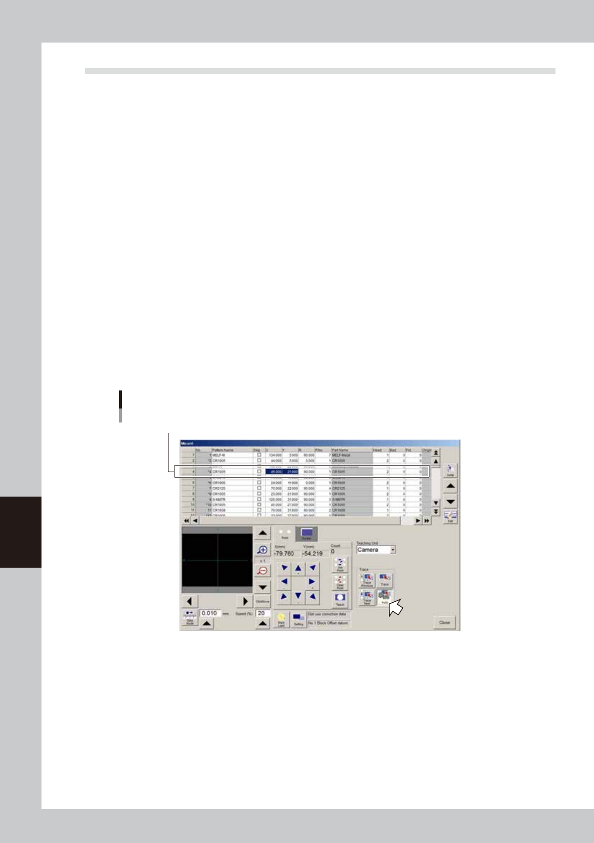 starting from the data row selected in step 4 toward the top of data rows. To stop continuous trace