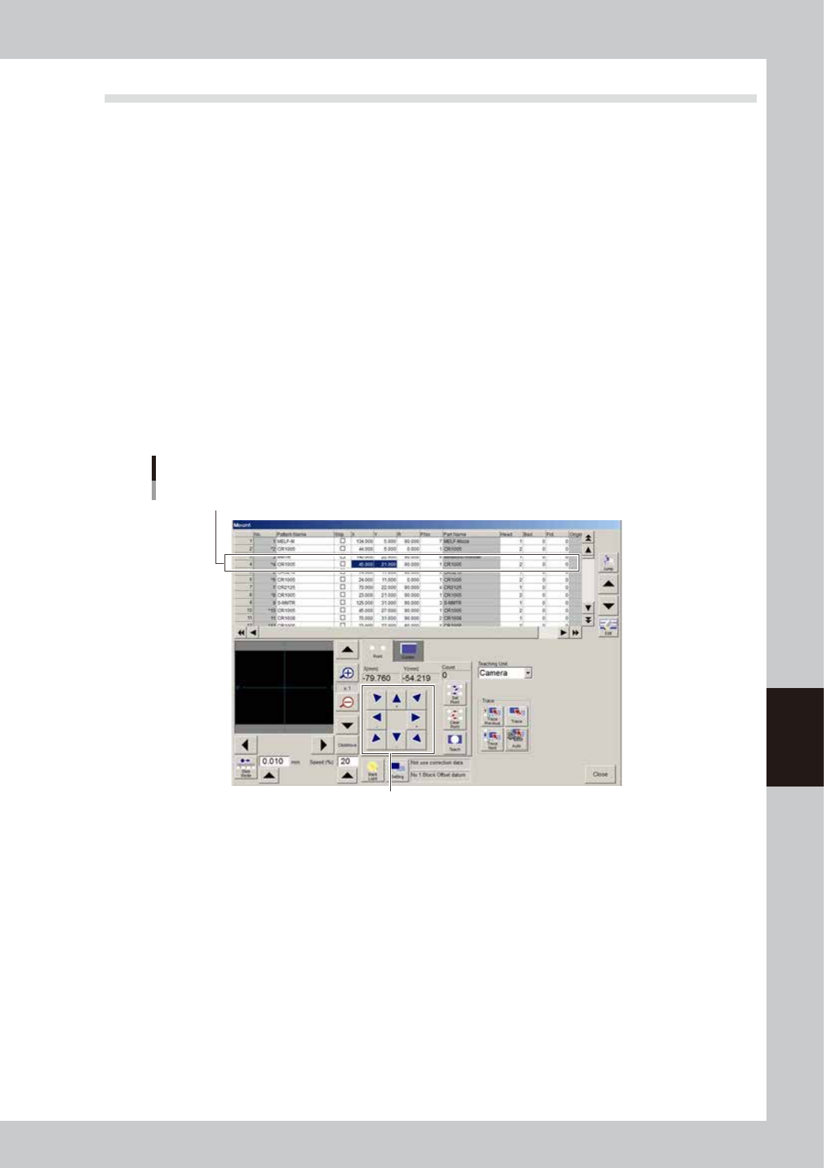Upon performing a trace, the teaching (trace) unit will start to move. Stay out of the axis movement