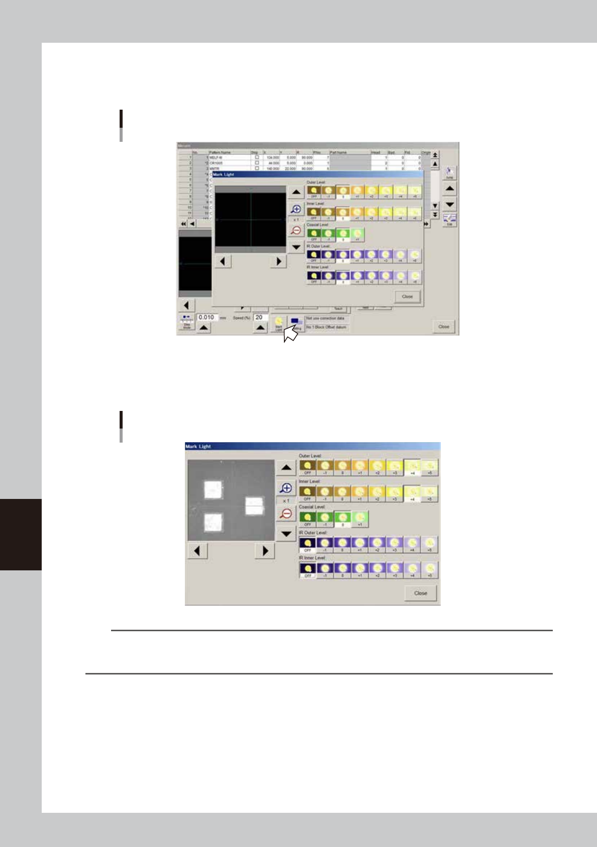 The mark lights include the "Outer Level", "Inner Level", and "Coaxial Level". The “Outer Level” and “Coaxial Level” are