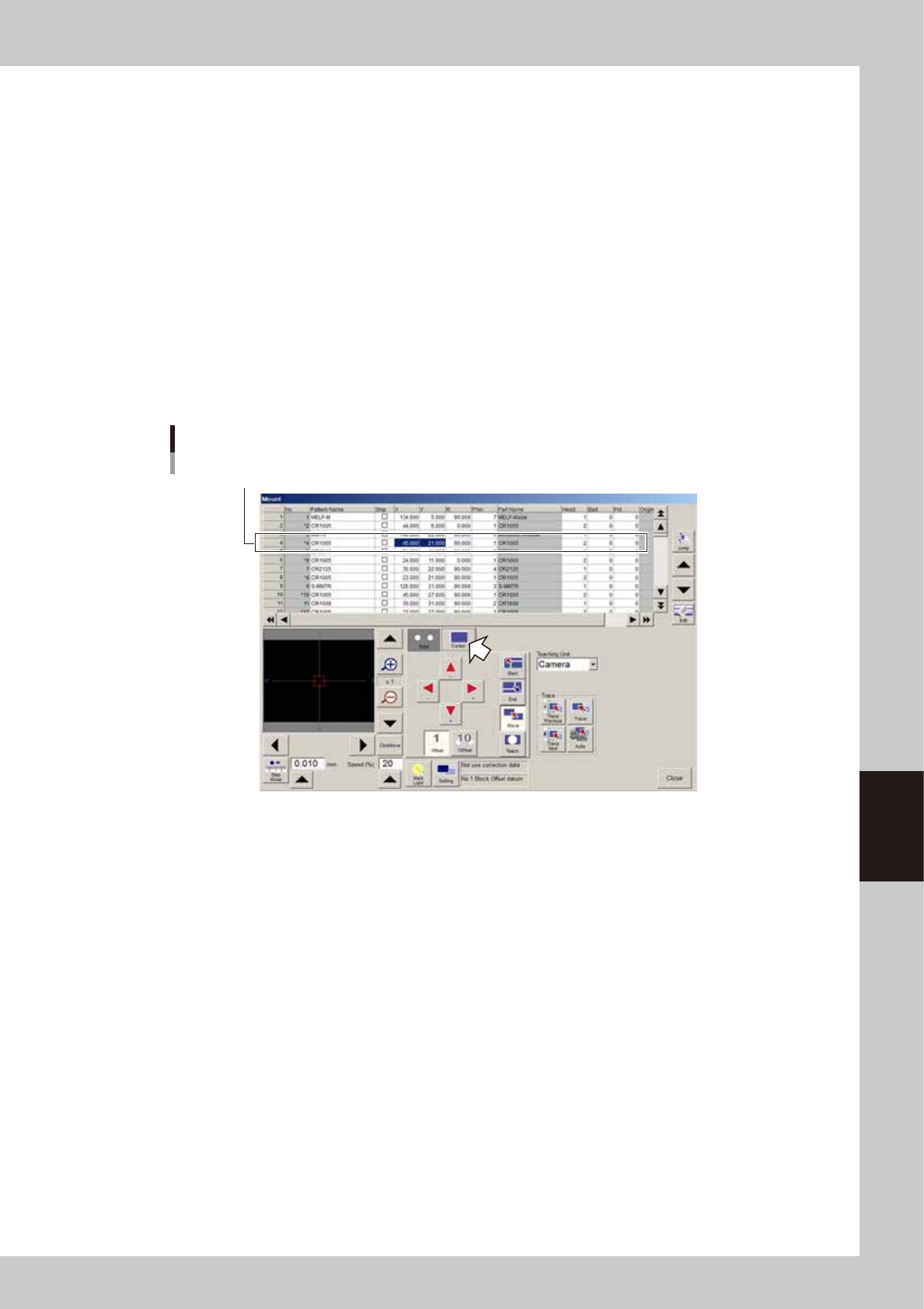 changes to a cross pointer. Place the cross pointer at the position you want to teach and press the left mouse button.