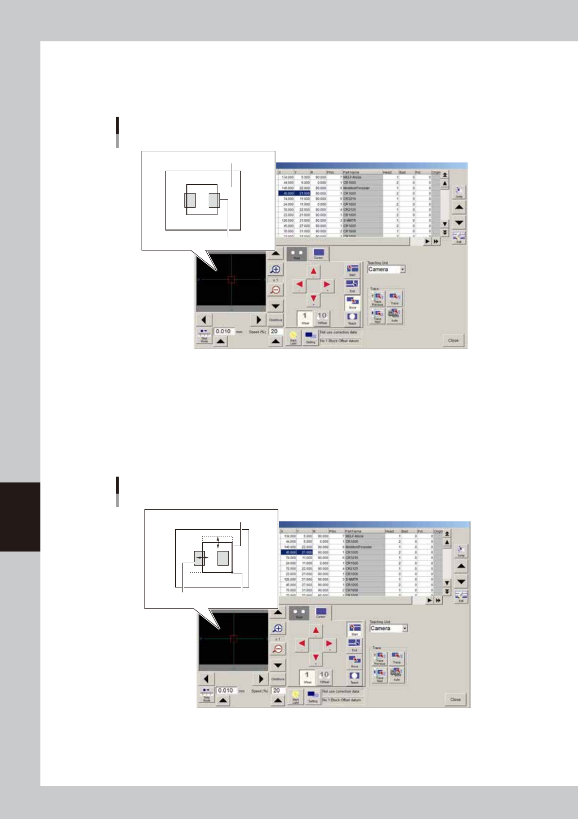 First move the teaching unit to a position near the center of target patterns so that all teaching