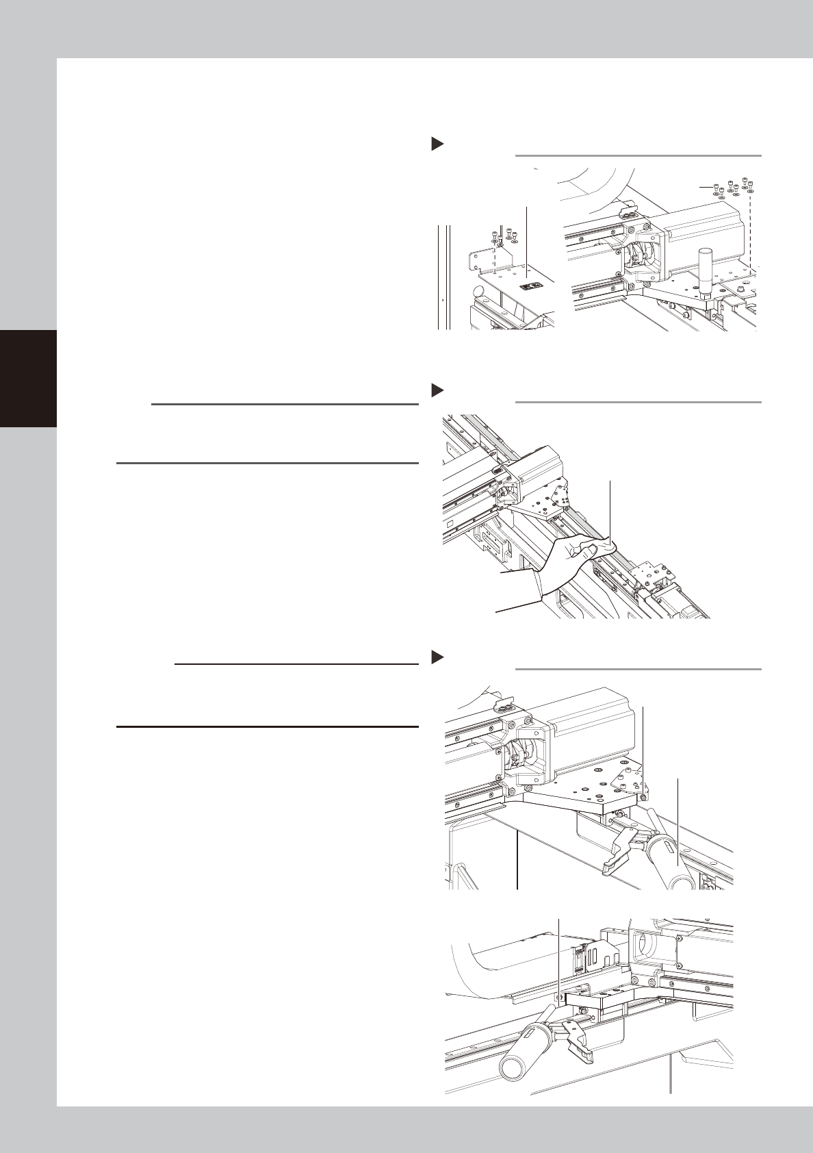 3-6 3 Periodic maintenance items 2.1.3 Cleaning and greasing the Y -axis ball screws e 1 Pr ess the emergency stop button. The machine must be in emergency stop to ensure safety during work. 2 Remo ve the grease spatteri…
