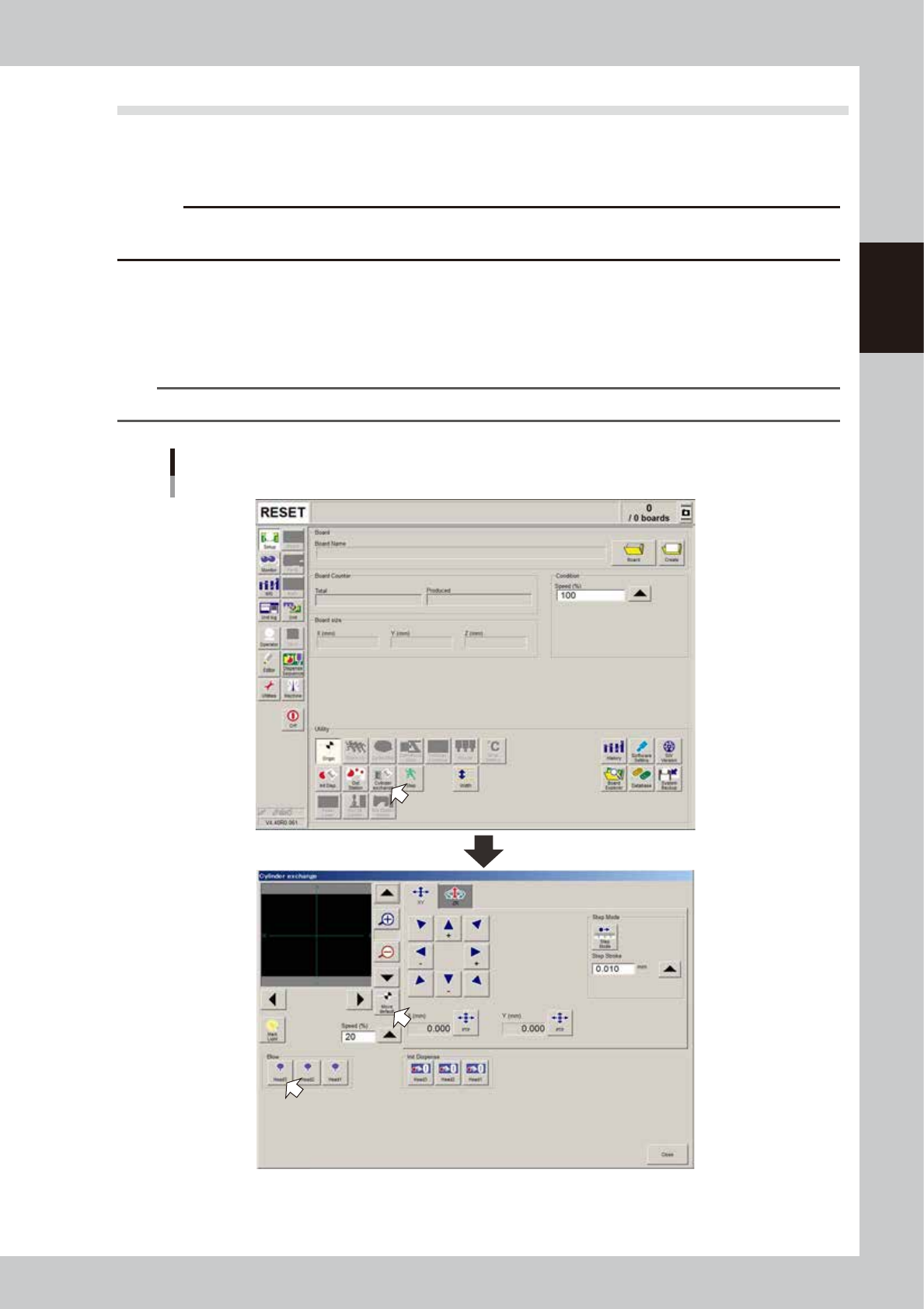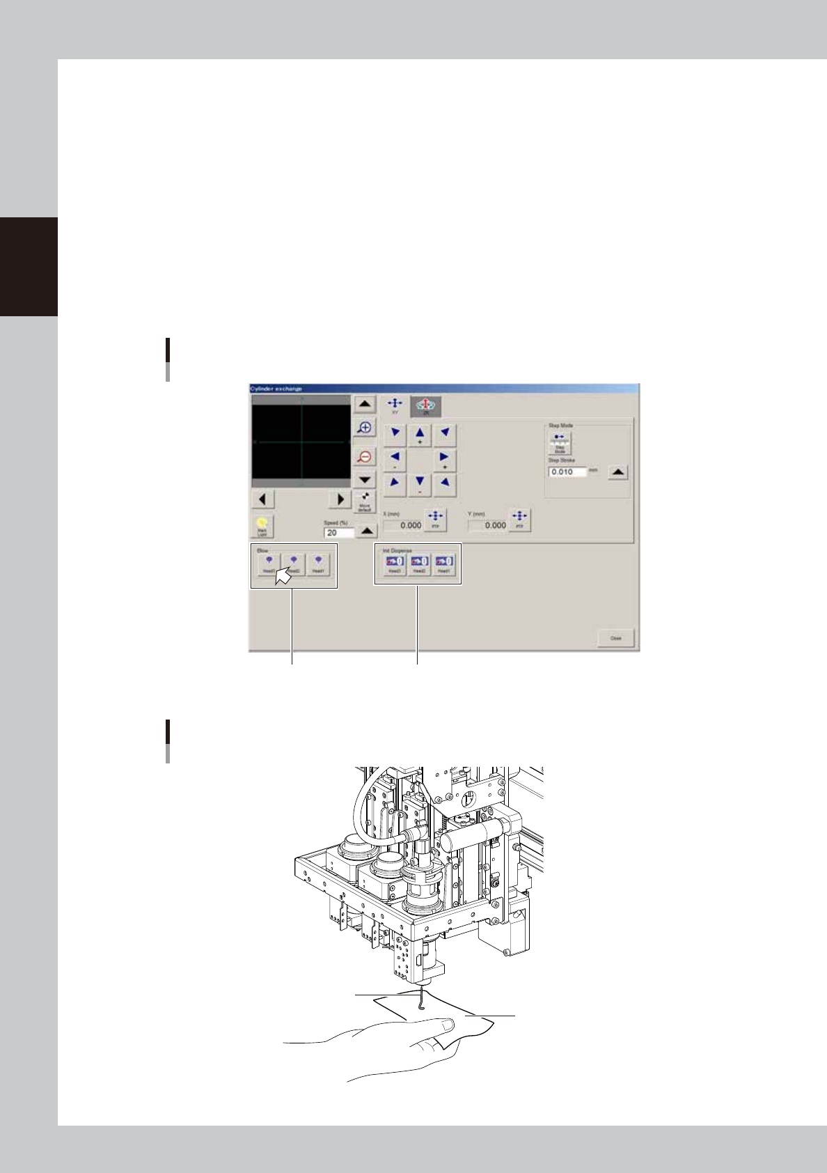 Press the [Move default] button to move the head to the syringe replacement position.