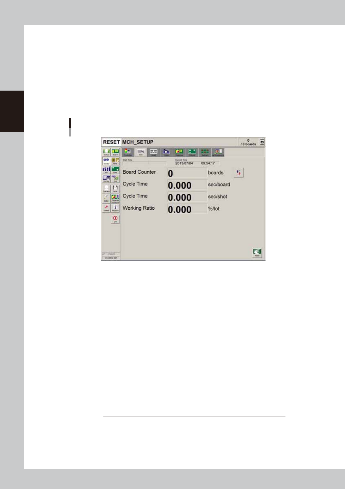 Shows the display data update time. The number of boards produced up to the last update time is shown in the "boards"