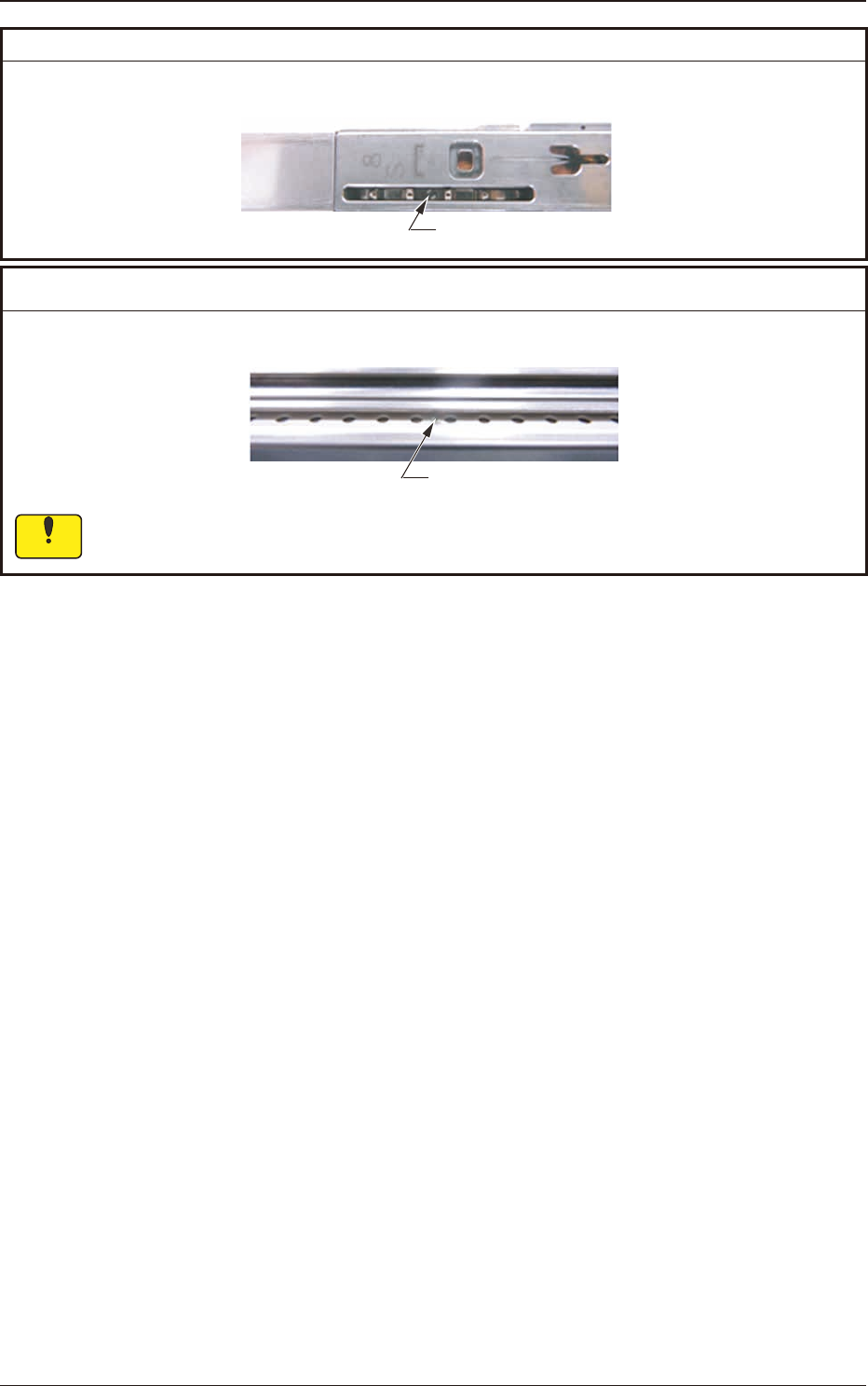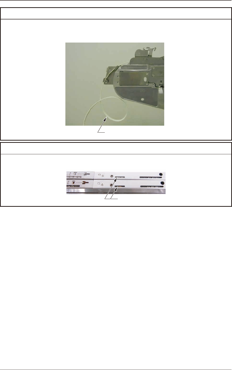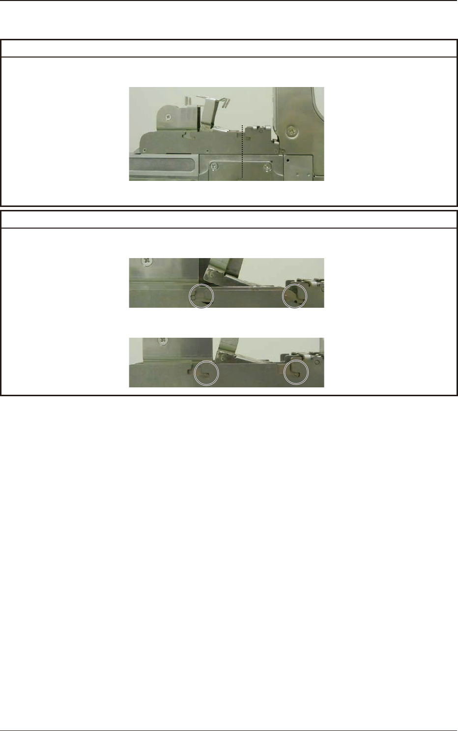 9.4 装载动作不正常 要 因 : 料带未安装到正确位置。 处理方法 : 请将料带重新安装到链轮齿 (3)。 请将料带安装到比链轮齿 3 顶点的里侧。 要 因 : 装载抑制器未安装到正确位置。 处理方法 : 请将装载抑制器重新安装到正确位置。 NG OK 未锁定装载压料器 1504-001 9.4 装载动作不正常 OM-1834 9-6