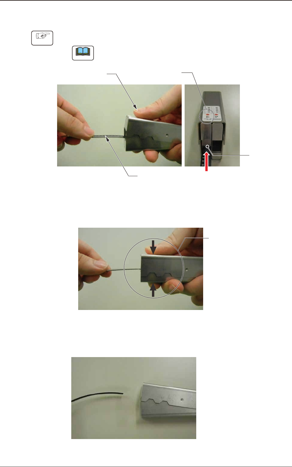 (1) 处理塑料带时使用治具的左侧 (E),料带插入到底。