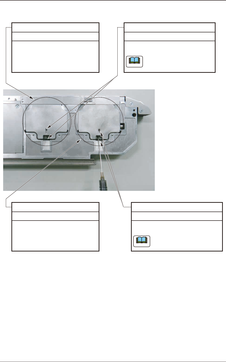 1504-001 5.5 维护保养方法 5.5 维护保养方法 5.5.1 SL 带式送料器 机盖的拆卸、安装 5.5.1.1 机盖 LA 的拆卸步骤 Procedure (1) 拆卸固定着机盖 LA 的盘头螺钉。(4 处 ) 盘头螺钉 (4 处 ) Fig.E9 (2) 向箭头左方向滑动机盖 LA。 Fig.E10 (3) 接着向箭头上方向滑动机盖 LA,拆卸机盖 LA。 Fig.E11 OM-1834 5-10