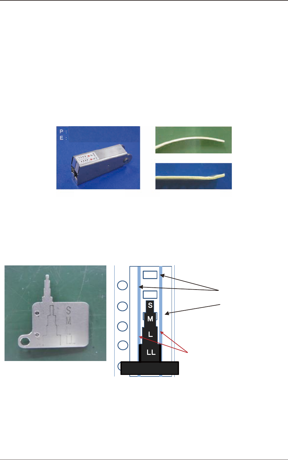 1504-001 10. 其他 10. 其他 10.1 SL 带式送料器附件(选项) (1) 料带定型治具 SL-TL100 是修正料带最前端由于卷带而留下的弯曲 , 以使盖料膜得意顺利切开 的专用治具。 分为纸料带和塑料料带两种。 (自动接料时,如果料卷最前端留有过大的弯曲,将会导致盖料膜无法 正常切开。 ) 修正前 Paper(纸料带) Emboss(塑料料带) 修正后 料带前端修正治具的外观 前端弯曲修正后的纸料带 Fig.J1 …