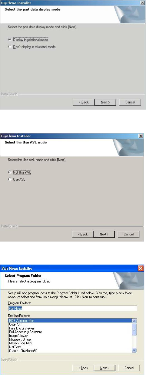 (23) , 选择元件显示模式 , 点击“next” ; (24) ,选择是否 使用 AVL, 点击“next” (25) , 选择程序中 的快捷文 件夹,默认 Fujiflexa;
