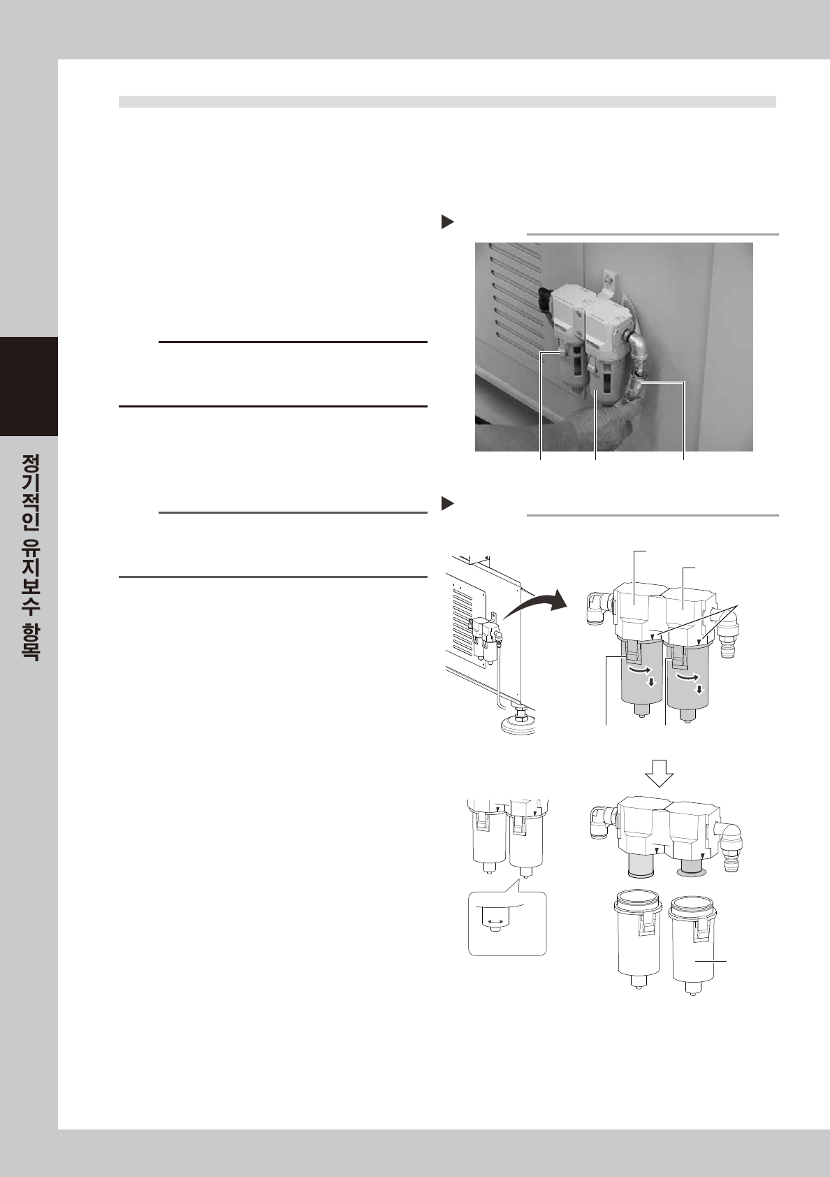 터가 사용되고 있습니다. 이들 필터의 점검과 청소방법 및 내부의 필터 엘리먼트를 교환하는 방법에 대해서 다음