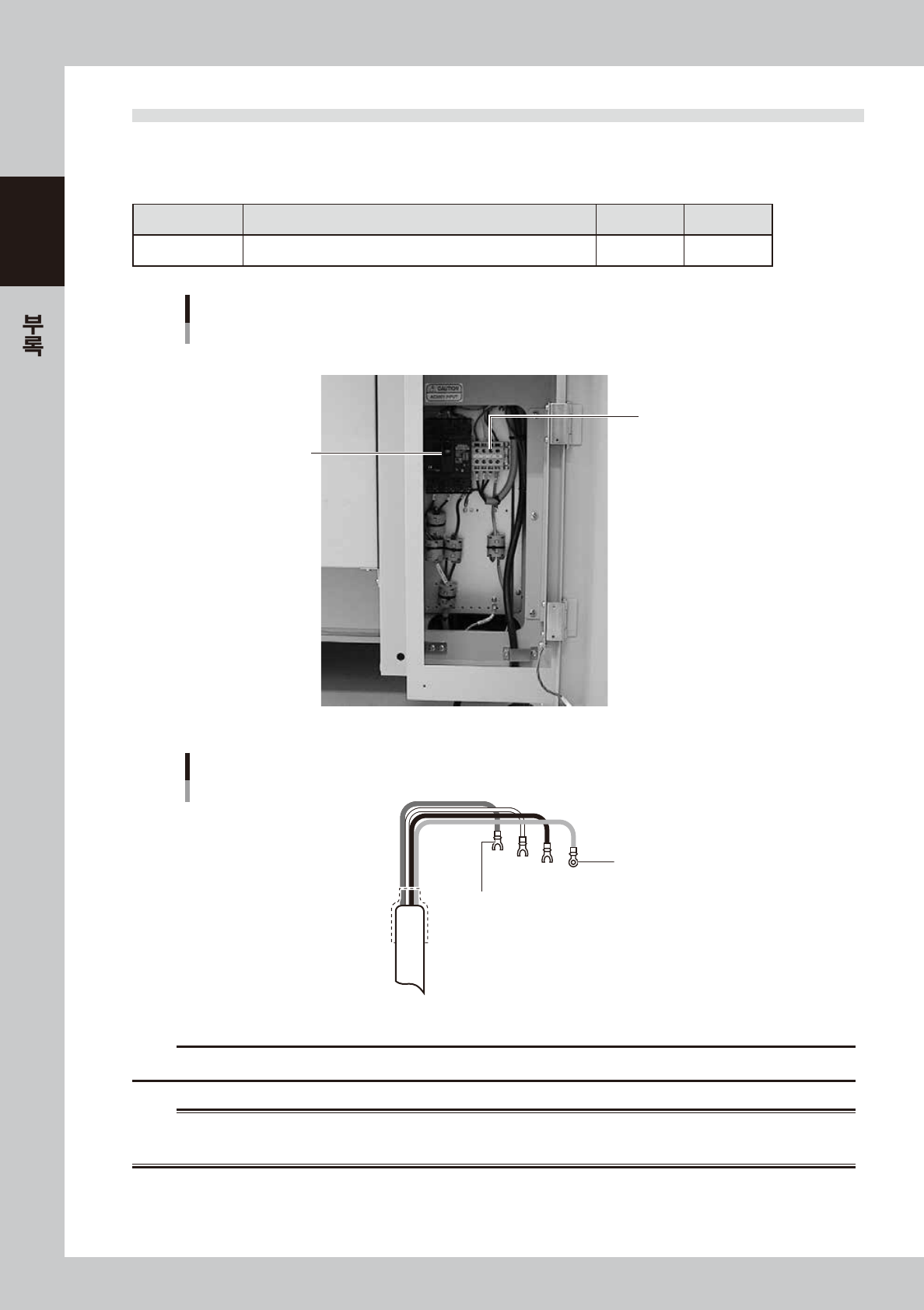 전원 케이블에는 , 도체 단면적이 2.5 ㎟ 이상의 것을 사용하여 주십시오 .