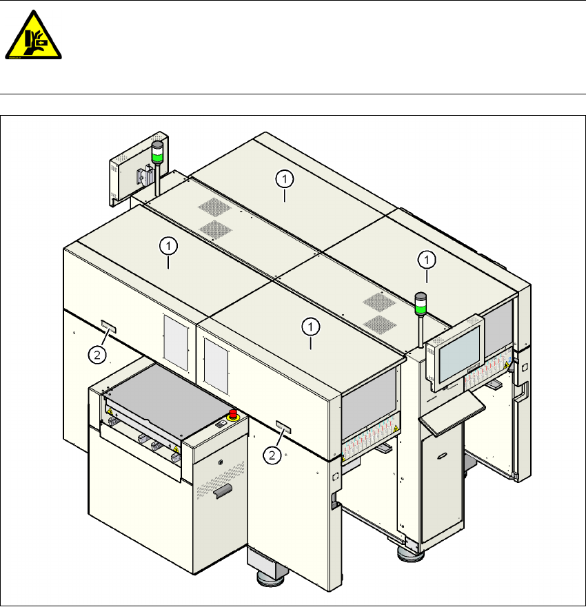 Руководство по эксплуатации SIPLACE D4i 2 Производственная безопасность ПО - версия SR.605.03 SP2 и выше 2.5 Указания по безопасности при эксплуатации автомата Издание 10/2012 RU 52 →П р и открыв ании или закрывании защи…