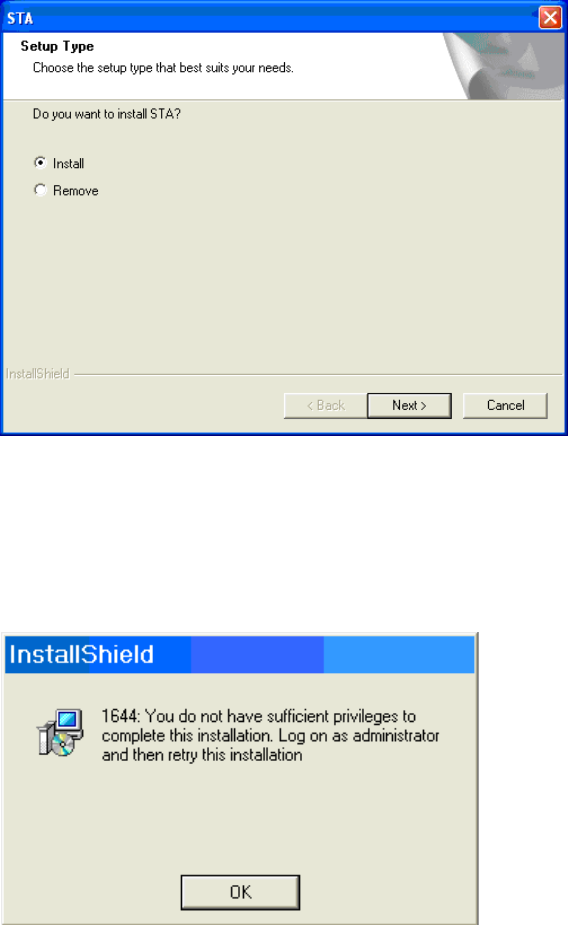 Installation was not made with adminstrator login. 2
