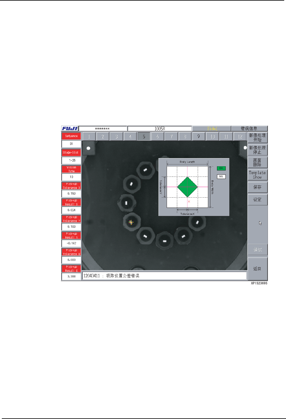 1. 吸取跟踪是检查在元件上设定的吸取跟踪值 ( 八角形所保围的范围 ) 内是否有吸嘴中心。