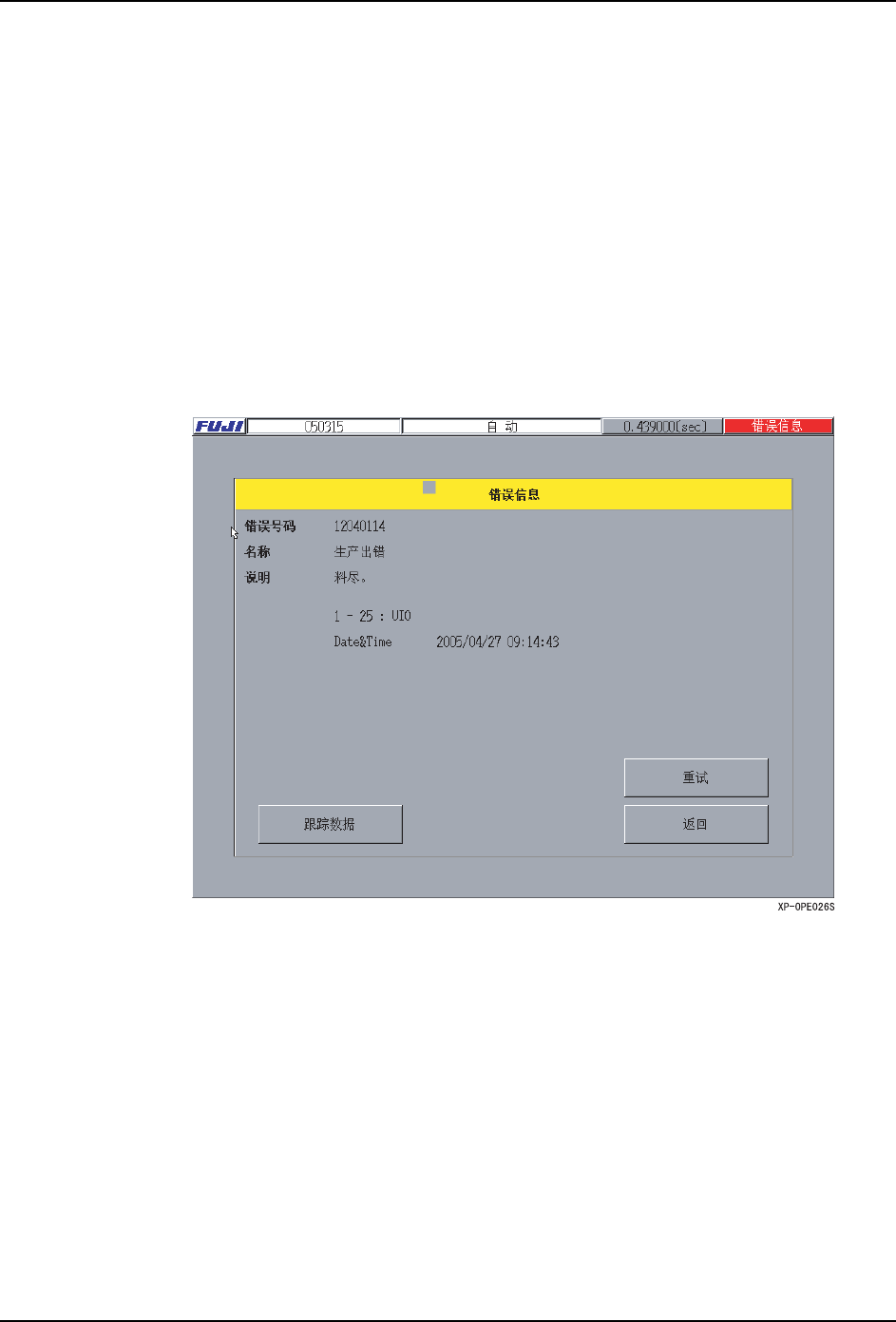 3. 不使用重试功能 (NonDispose 模式)时,按下 [ 返回 ] 按键打开 [ 错误信息 ] 画面。
