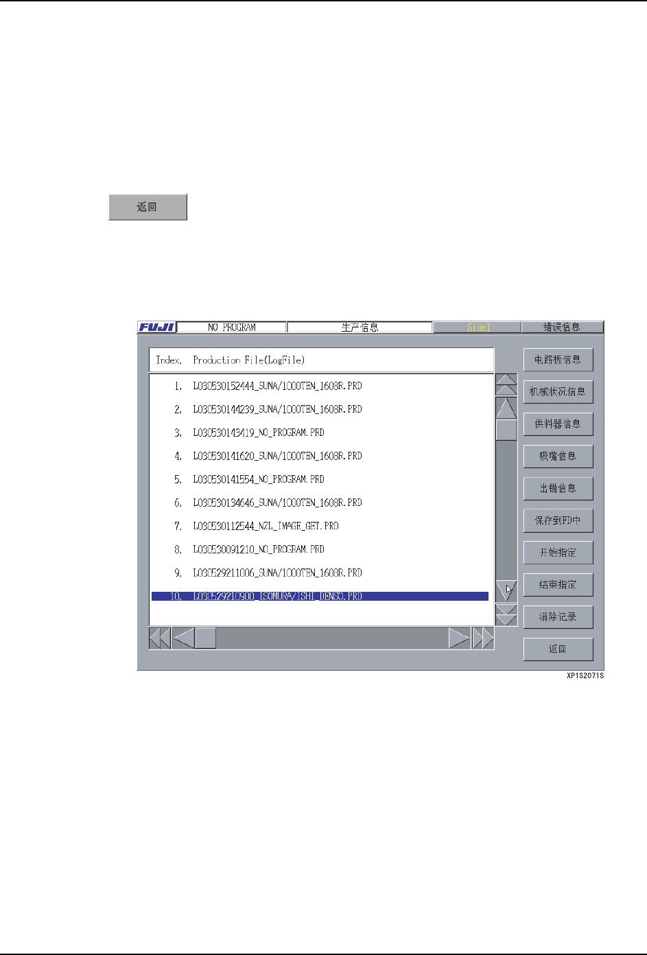 显示满足指定条件的生产记录数据,或是显示保存在记录文件中的生产程序名称。如果选