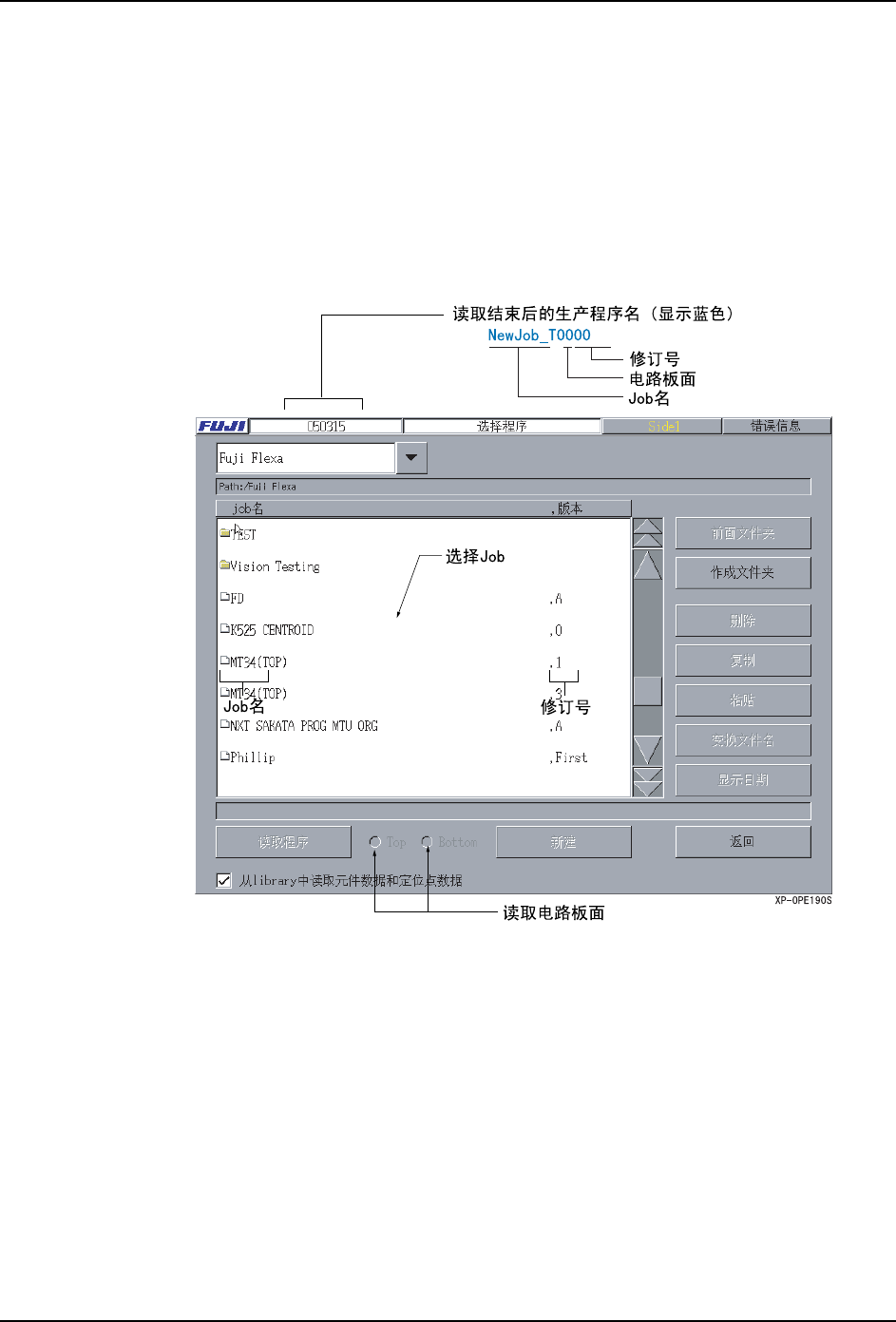 注意 ) 仅仅执行 Job 的读取,生产程序文件 (*.POG)即使在 XP 机器的硬盘上,也不能作成 Fuji