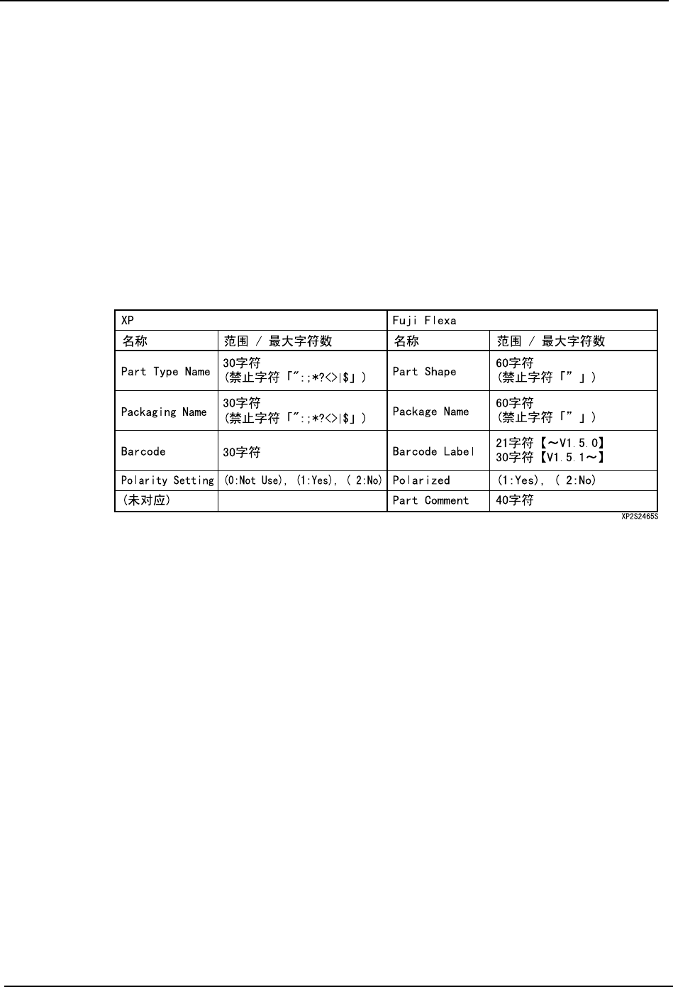 SYS-XP143-1.0S 3. 操作系统 XP-142E/143E 系统手册 143 元件 / 定位点数据的编辑 元件 / 定位点 数据没有必要特 意访问 F uji Flexa, 在 XP 和 Fuji Flexa 上,有数 据的范围 或者禁止字符等 不同规格的数 据。在 X P 机器 上读取 Fuji Flexa 数据库的元件 / 定位点数 据进行编辑时,请注意以下的事 项。 元件号 ·XP 和 Fuj i Flexa 上 的禁…