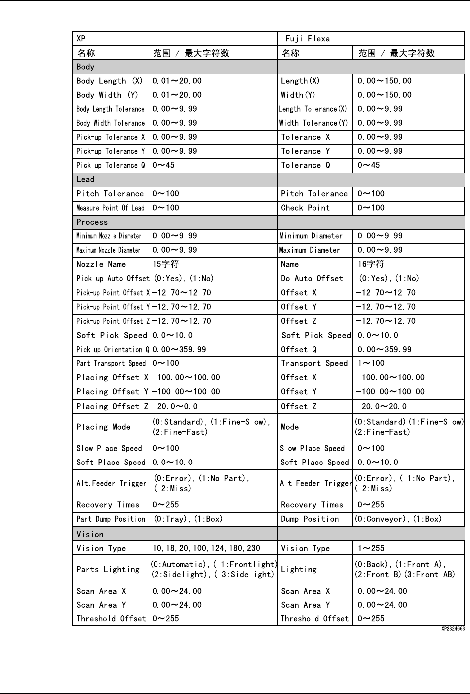 ·Part Transport Speed:XP 和 Fuji Flexa 的有效范围不同。