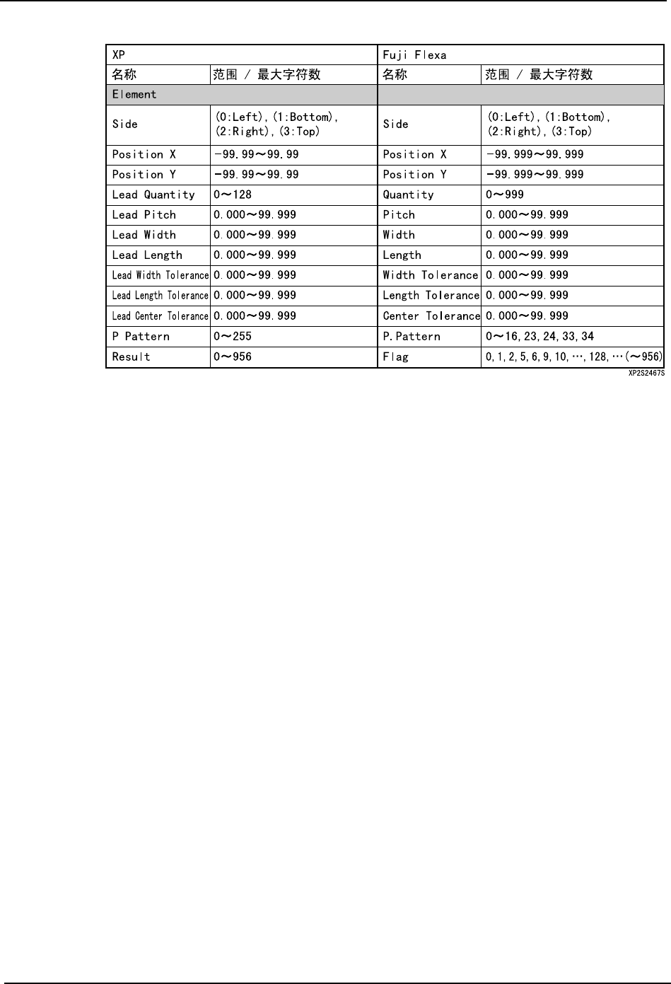 元件 / 定位点数据没有必要特意访问 Fuji Flexa, 在 XP 和 Fuji Flexa 上,有数据的范围