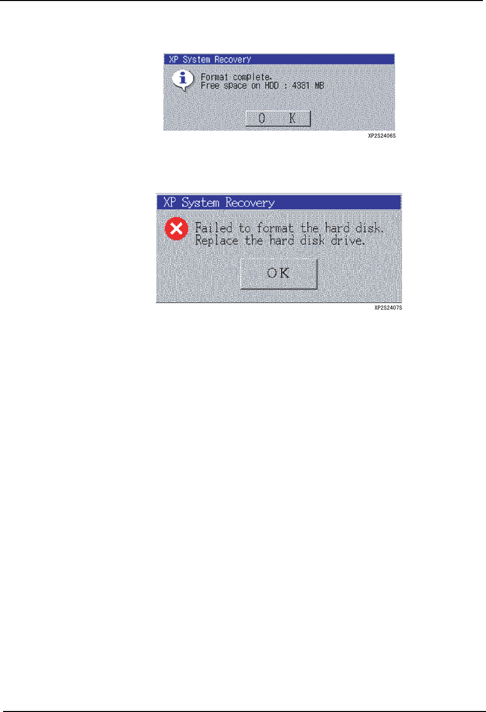 6. 如果格式化失败,将会显示以下的对话框。单击 [OK] 键,将 XP 机器关机。