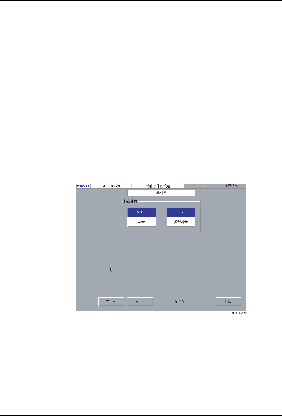 是使用单料盘时设定料盘种类的画面。使用单料盘时,有必要在单料盘上指定料盘的种