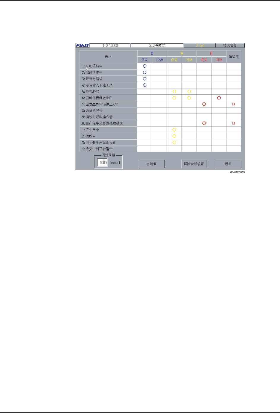 2. 对各项分别设定信号塔的颜色、点亮 / 闪烁、蜂鸣器等。已设定的项目显示出 “○”。