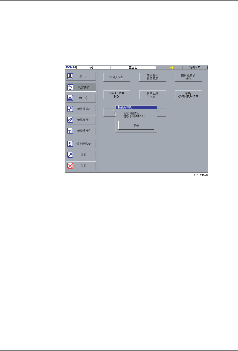 1. 在[主画面]上选择[机器操作]、[贴装头待机]。