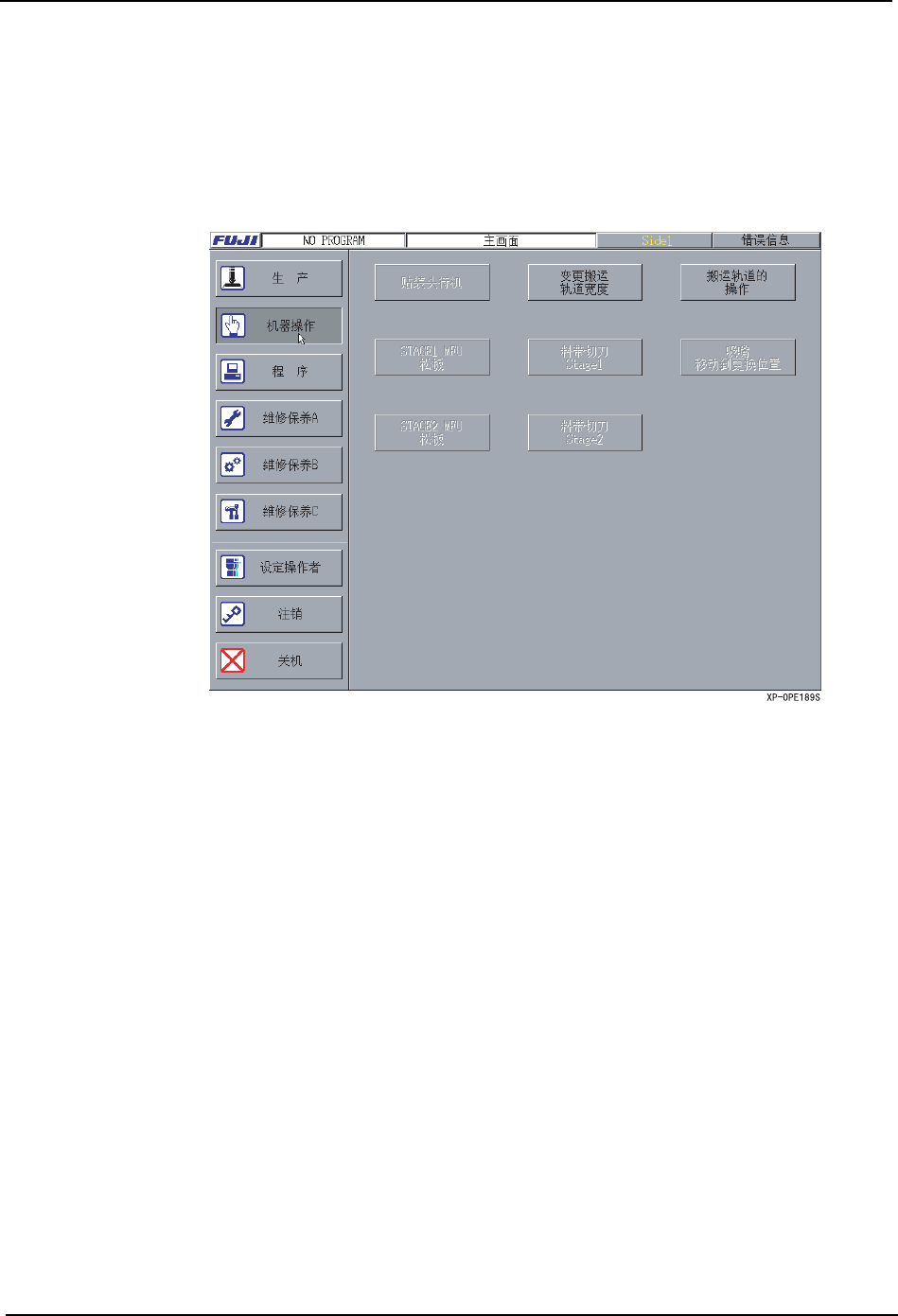1. 在 [ 主画面 ] 上选择 [ 机器操作 ]、[ 搬运轨道操作 ],显示出 [ 搬运轨道操作 ] 画面。