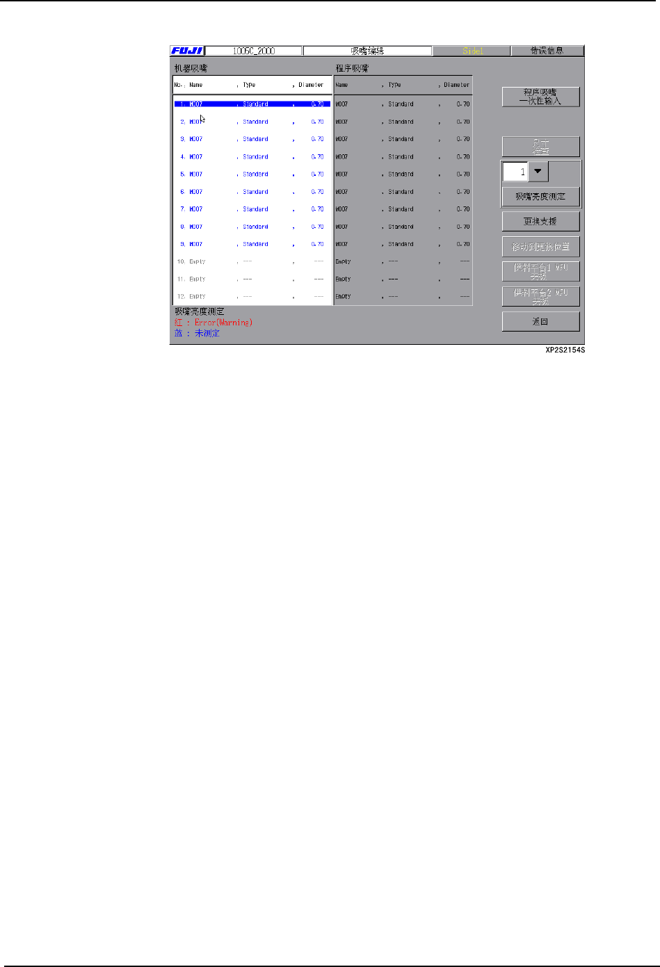 1. 在 [ 主画面 ] 上选择 [ 生产 ]、[ 吸嘴编辑 ],显示出 [ 吸嘴编辑 ] 画面。此画面有