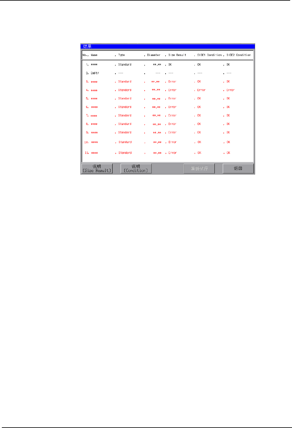 测定结果中出现错误时,请按照 [Size Result]、 [Conduction] 的说明,确认吸嘴等情