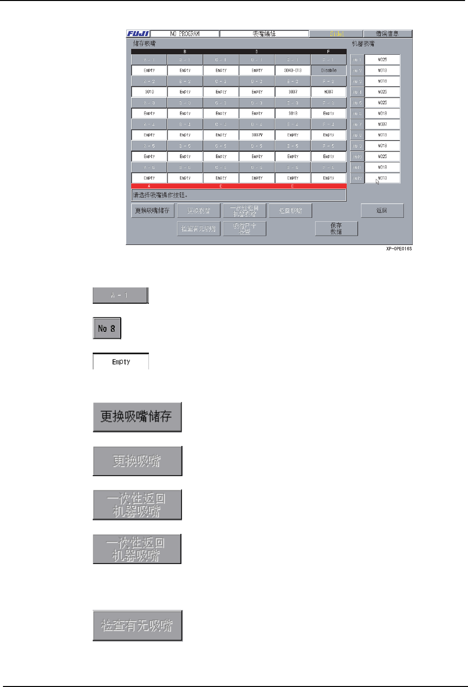 注意 ) 在进行吸嘴有无检查和吸嘴尺寸检查时,在 「Empty」吸嘴头中确认有吸嘴时,显示从