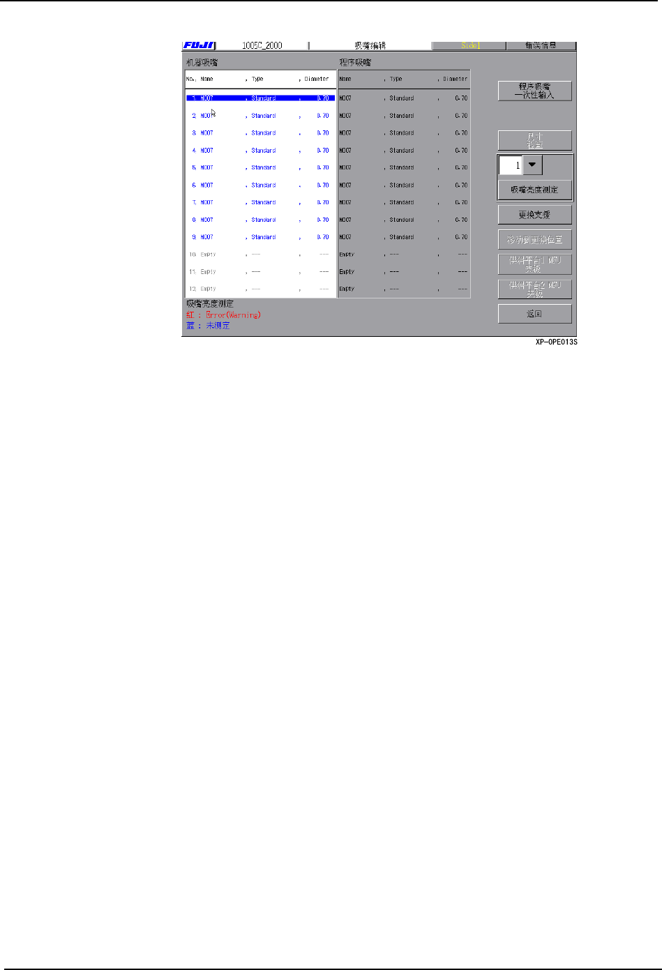 伴随着上述的测定结果,机器吸嘴一览表的文字的颜色被改写。按下画面右侧的 [ 光标