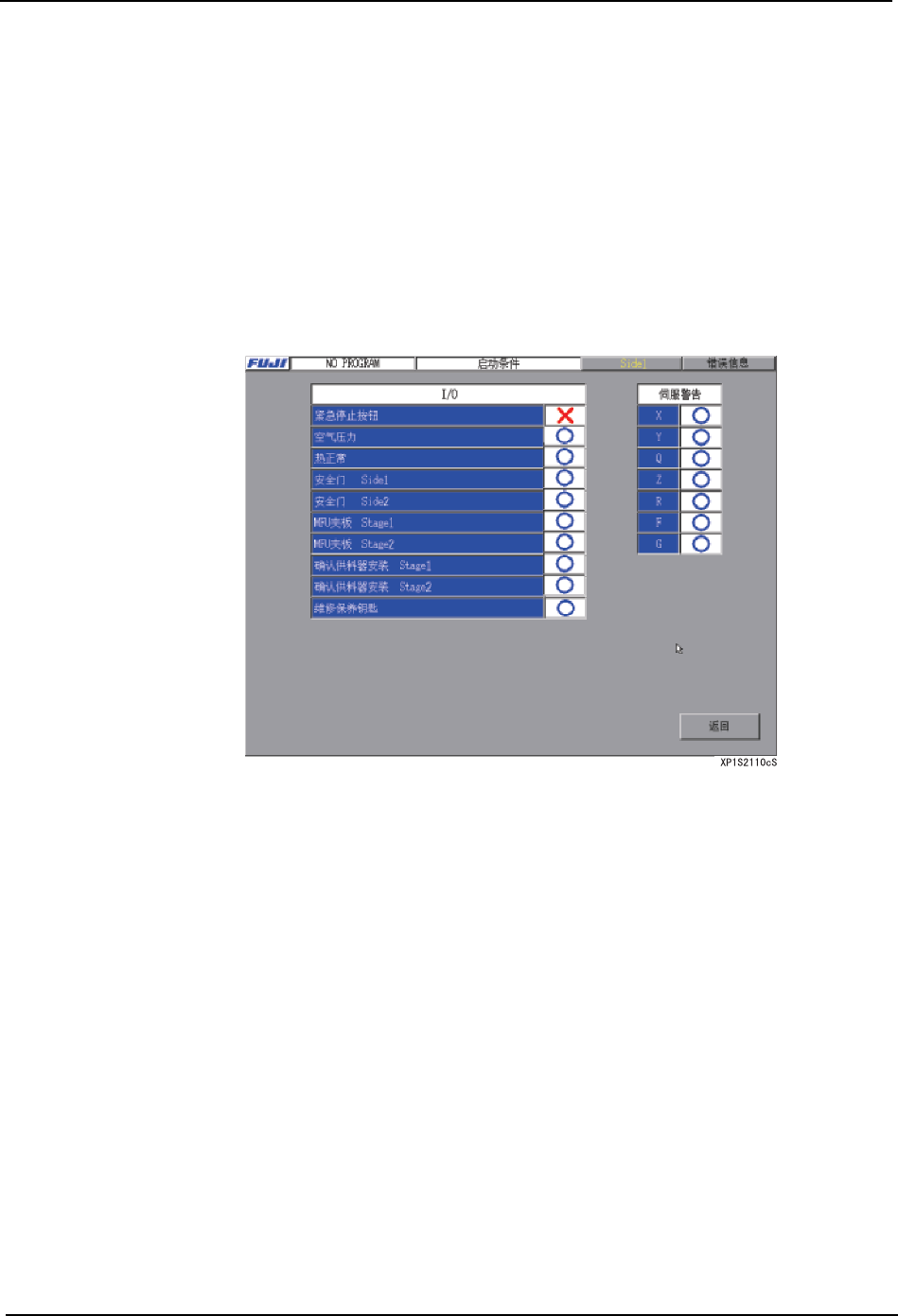 SYS-XP143-1.0S 3. 操作系统 XP-142E/143E 系统手册 71 3.4 生产的开始 3.4.1 启动条件的确认 为了能够在机器上进行自动运转 ,必须满足启动条件。启动条件的检 查请按以下步骤进 行。 操作步骤 1. 在 [ 主画面 ] 上选择 [ 生产 ]、[ 启动条件 ],显示出 [ 启动条件 ] 画面。显示出 「×」 的时候不能启动,请将 「×」复原到 「○」 。 备注 ) [ 运转准备 ] 按键在灯灭 ( …