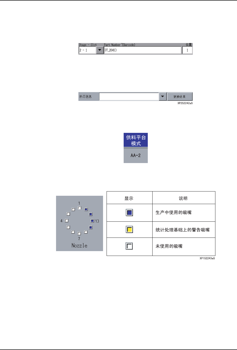 吸嘴 : 在以下的区域中显示出各个吸嘴的状态。