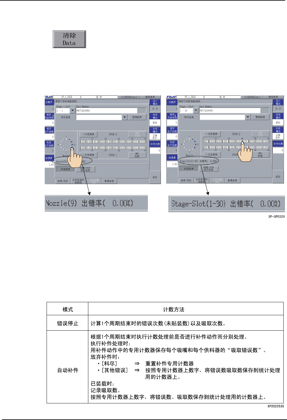时的错误数 ( 未贴装块数 ) 以及吸取数。计算可分别累积各吸嘴·料站过去 1 万次的数