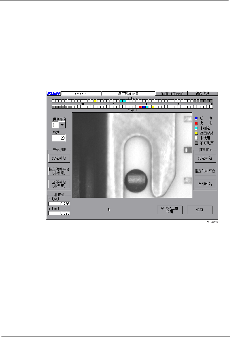 [ 取消 ] 按键 : 结束测定 (此时不进行失败的料站的吸取位置补正)。