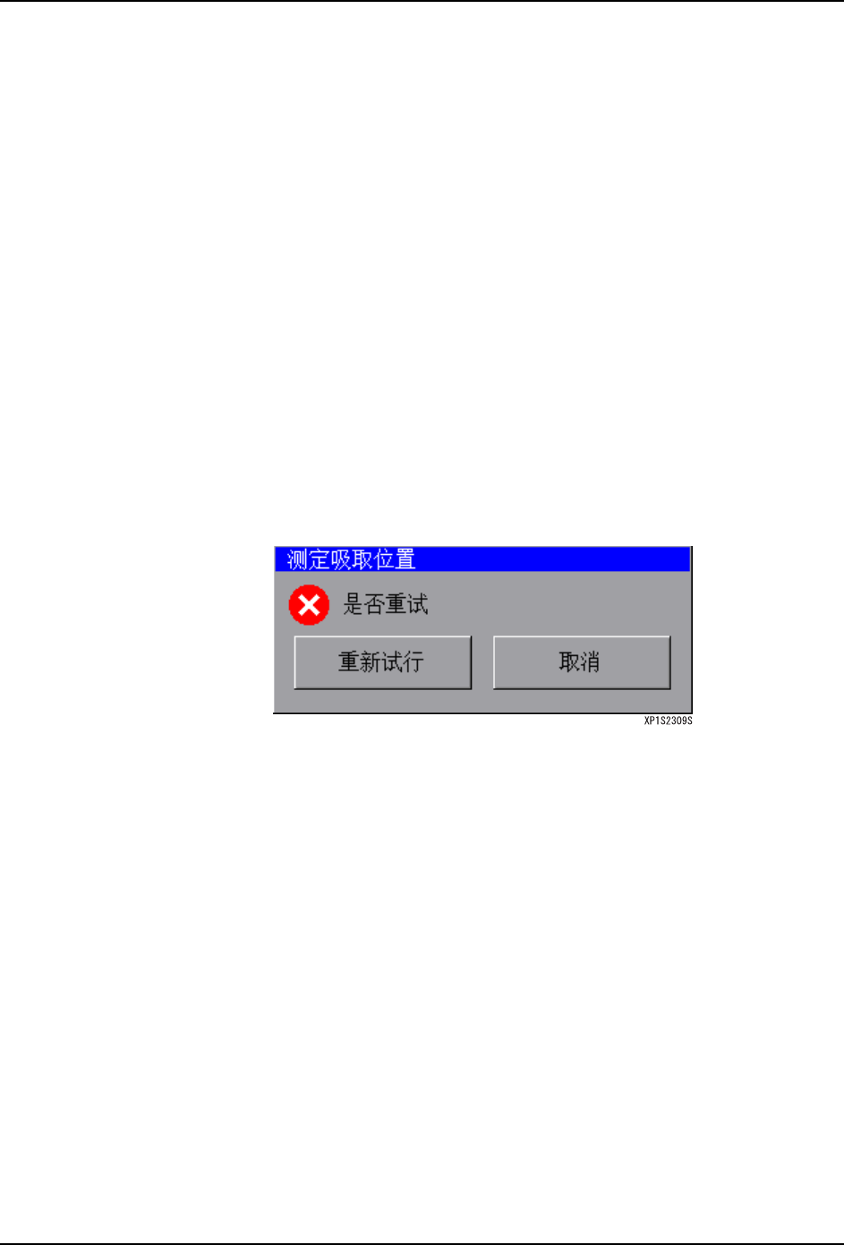 吸取位置的测定失败时,显示出错误对话框。关闭这个错误对话框时,显示出是否进行重