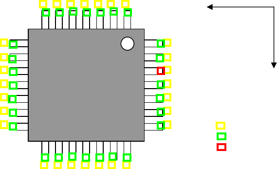 如下图,在元件数据中计算出的理想电极位置为黄色小方块来表示、检查合格电极为绿色小方块